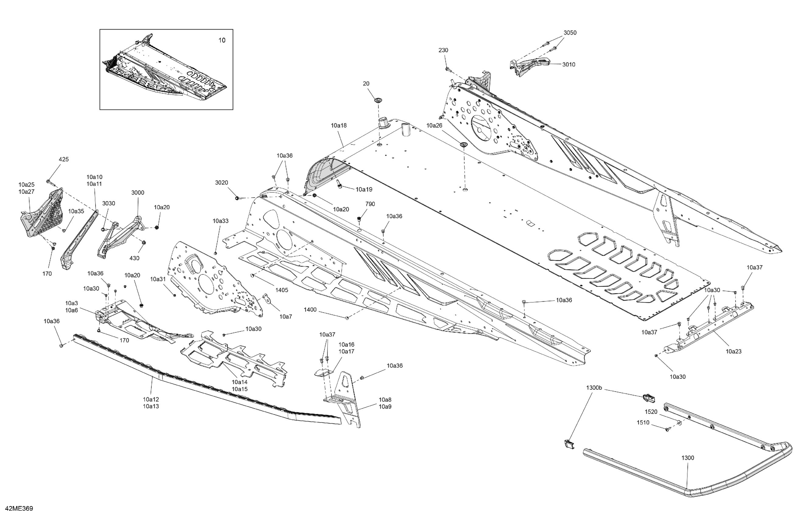 Ski-Doo North America - BACKCOUNTRY - 850 E-TEC - X-RS - UZSD - Flare Yellow HG - 154X16X2.5PII Track - 2025 06- Frame - System - Rear Section Diagram