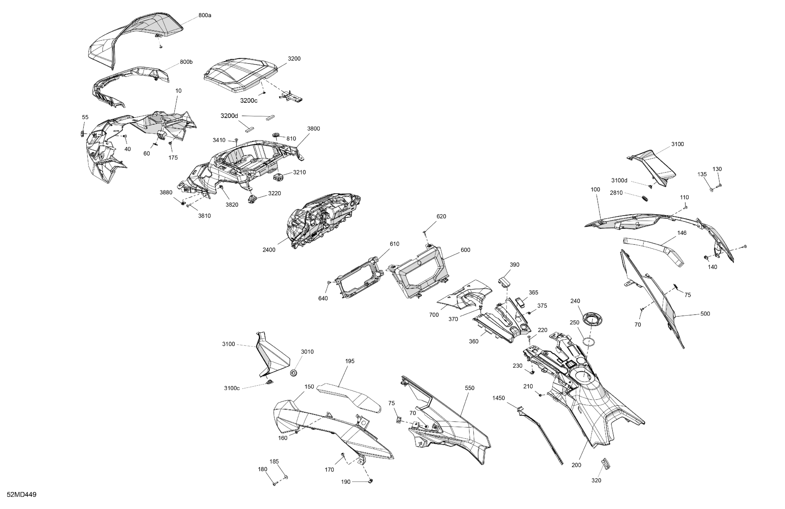 Ski-Doo North America - BACKCOUNTRY 850 E-TEC - X - UXRD - Deep Black - 146X15X1.6C Track, 2024 07- Body - Hood Diagram