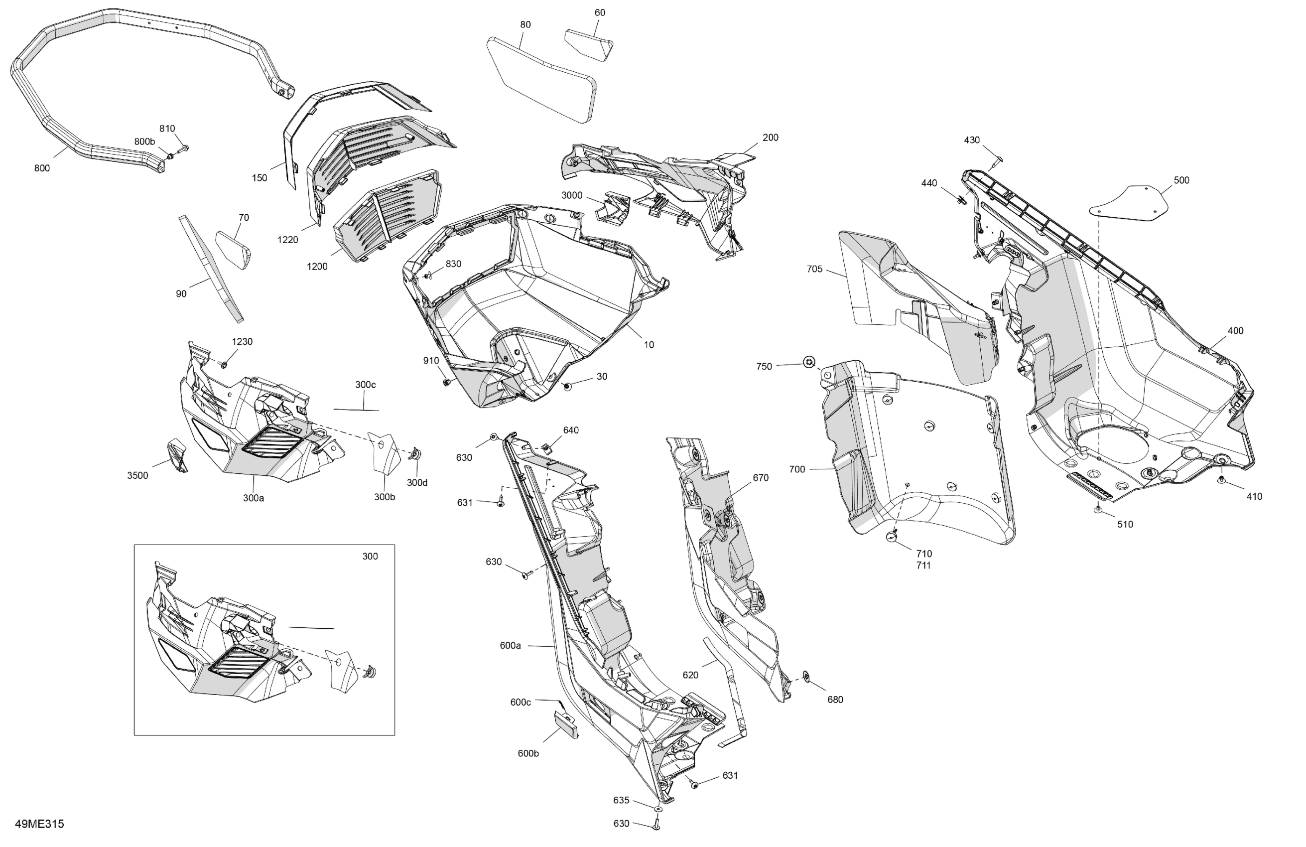 Ski-Doo North America - BACKCOUNTRY - 850 E-TEC - X - UXSA - Monument Gray - 146X15X1.6C Track - 2025 07- Body - Bottom Pan Diagram