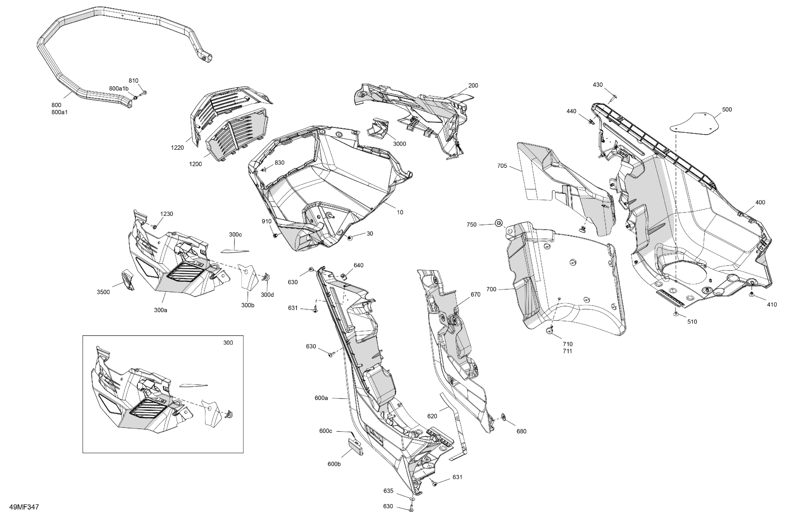 Ski-Doo North America - BACKCOUNTRY - Adrenaline - 600R E -TEC - UJTC - Catalyst Gray - 15X146X1.5S Track, 2026 07- Body - Bottom Pan Diagram