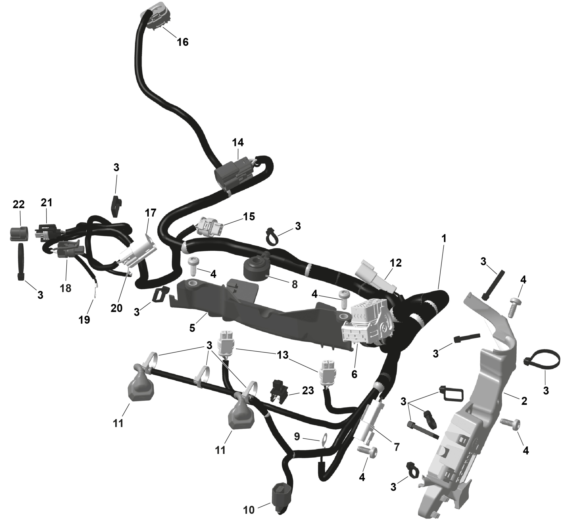 Ski-Doo BACKCOUNTRY - Adrenaline - 850 E-TEC - UGTA - Deep Black - 16X146X2.0P Track, 2026 ROTAX - Engine Harness And Electronic Module Diagram
