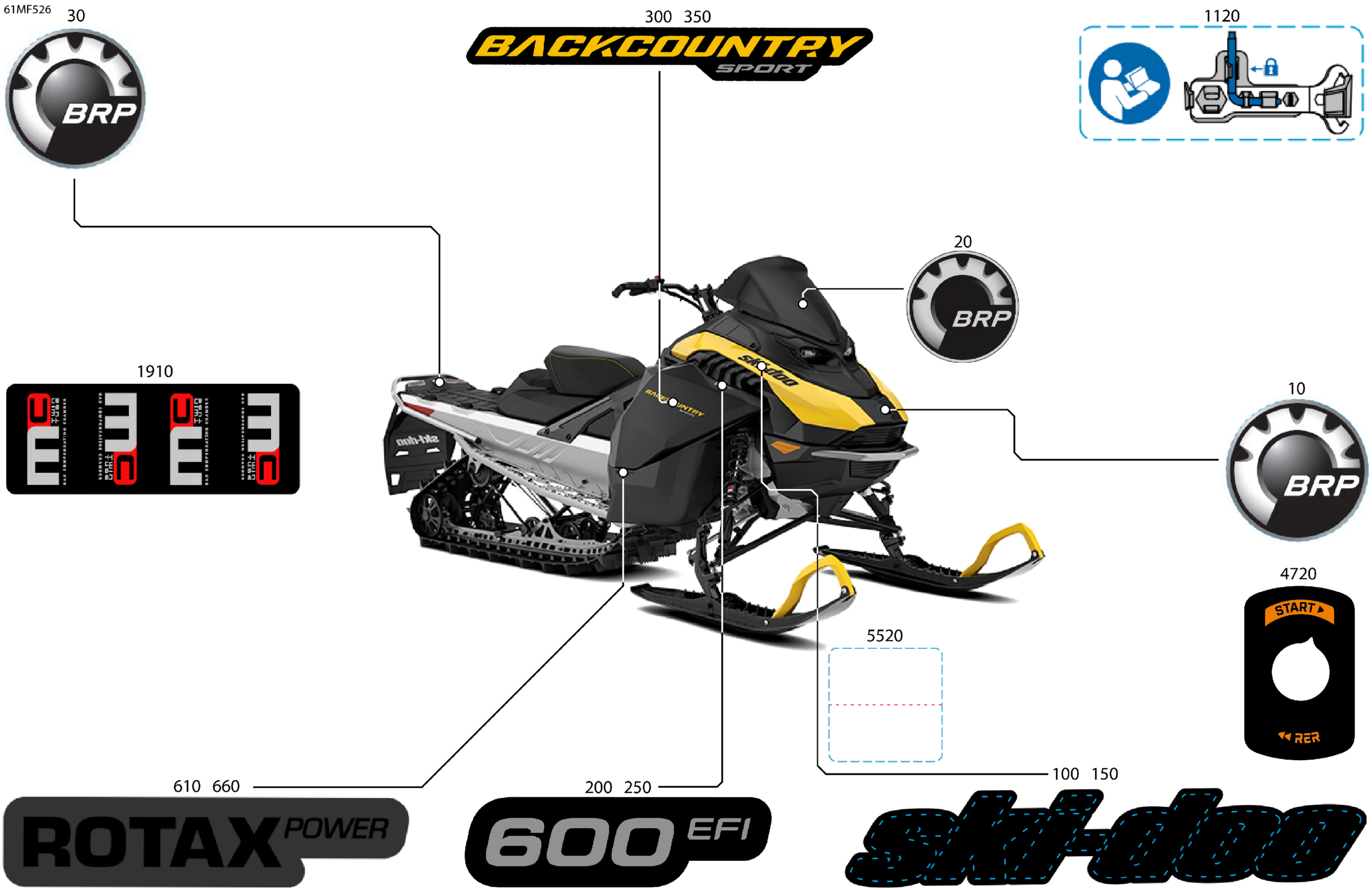 Ski-Doo North America - BACKCOUNTRY - SPORT - 600 EFI - UBTA - Neo Yellow - 16X146X2.0P Track, 2026 07- Body - Decals Diagram