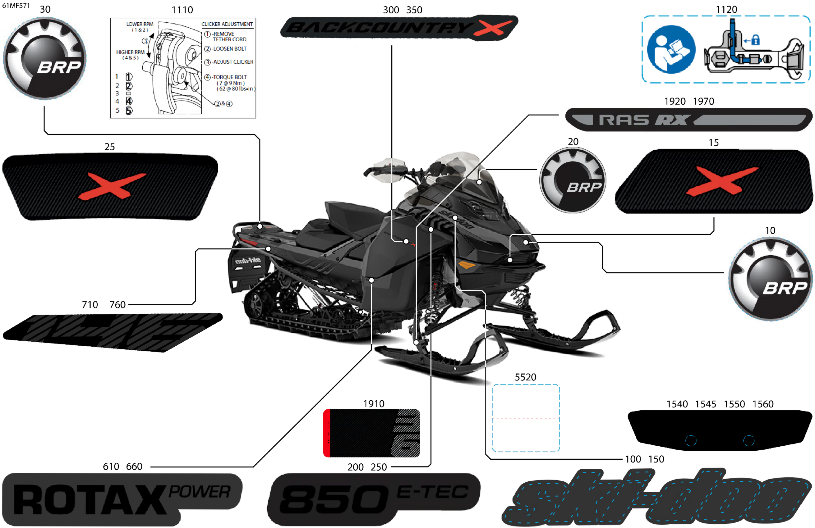 Ski-Doo North America - BACKCOUNTRY - X - 850 E-TEC - UXTE - Deep Black - 15X146X1.5S Track, 2026 07- Body - Decals Diagram