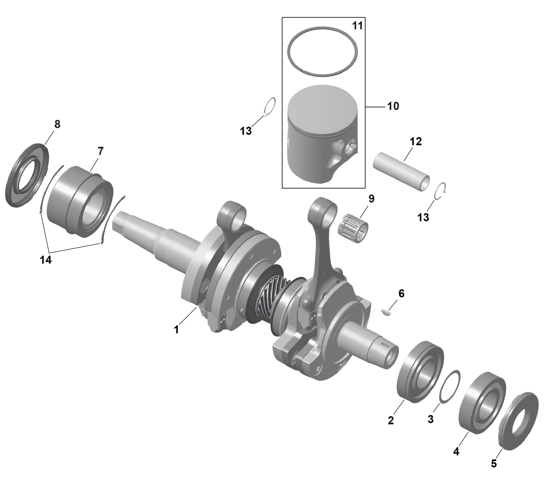 Ski-Doo BACKCOUNTRY - X-RS - 850 E-TEC Turbo R - UZT3 - Scandi Blue - 16X146X2.0P Track - SHOT starter, 2026 ROTAX - Crankshaft and Pistons Diagram