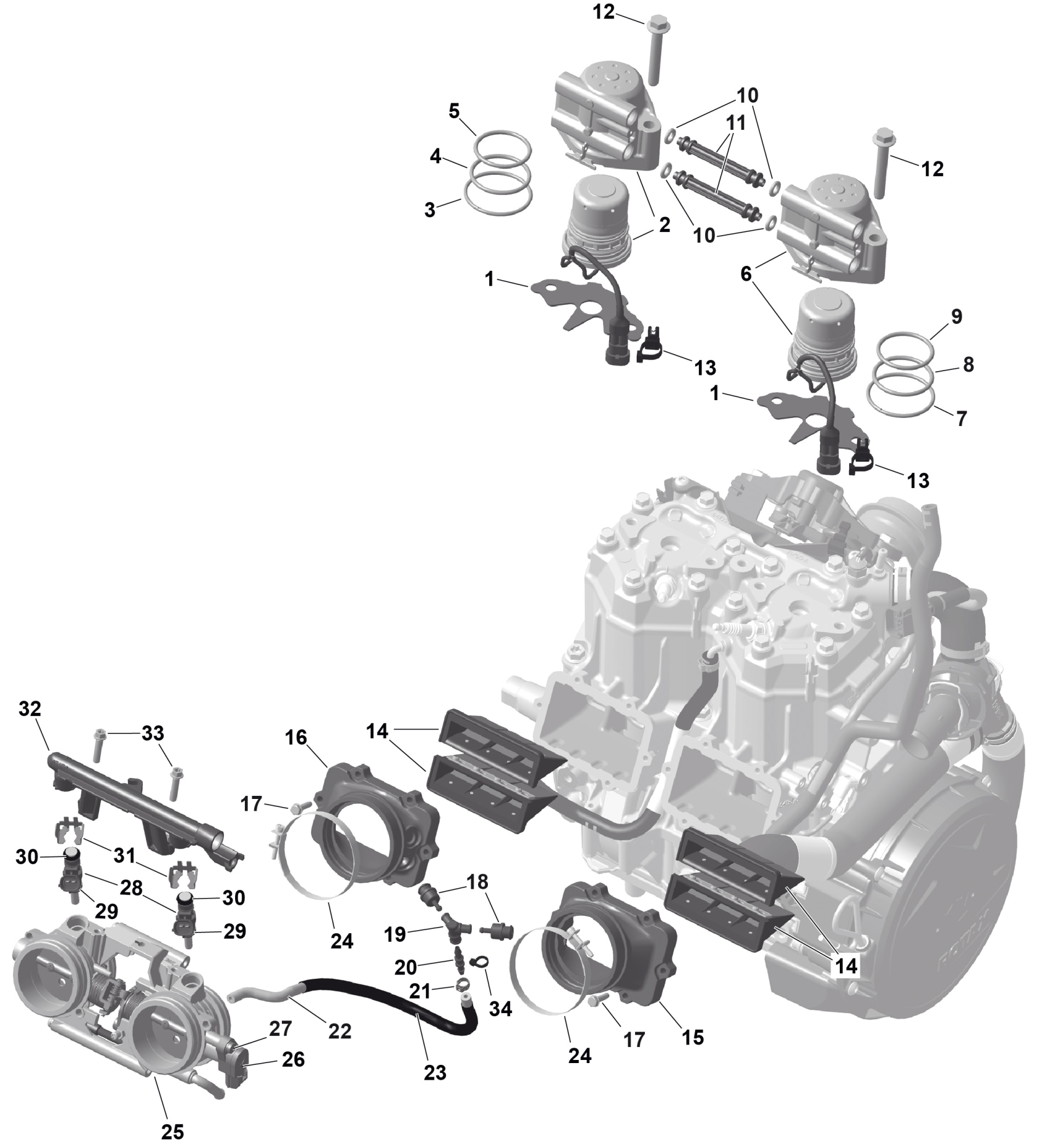 Ski-Doo North America - BACKCOUNTRY - X-RS - 850 E-TEC Turbo R - UZT3 - Scandi Blue - 16X146X2.0P Track - SHOT starter, 2026 01- ROTAX - Electronic Fuel Injection Diagram