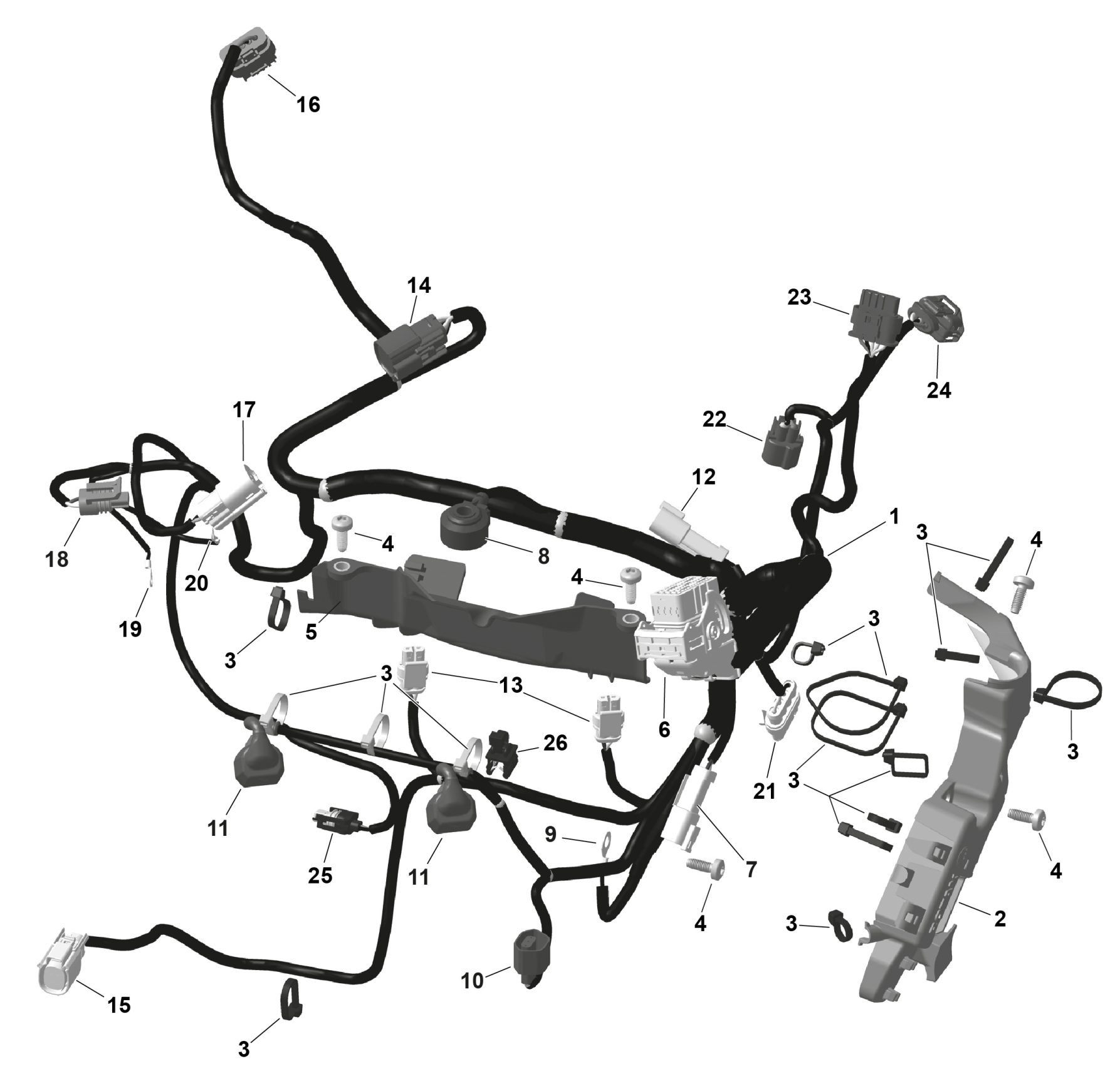 Ski-Doo BACKCOUNTRY - X-RS - 850 E-TEC Turbo R - UZT3 - Scandi Blue - 16X146X2.0P Track - SHOT starter, 2026 ROTAX - Engine Harness And Electronic Module Diagram