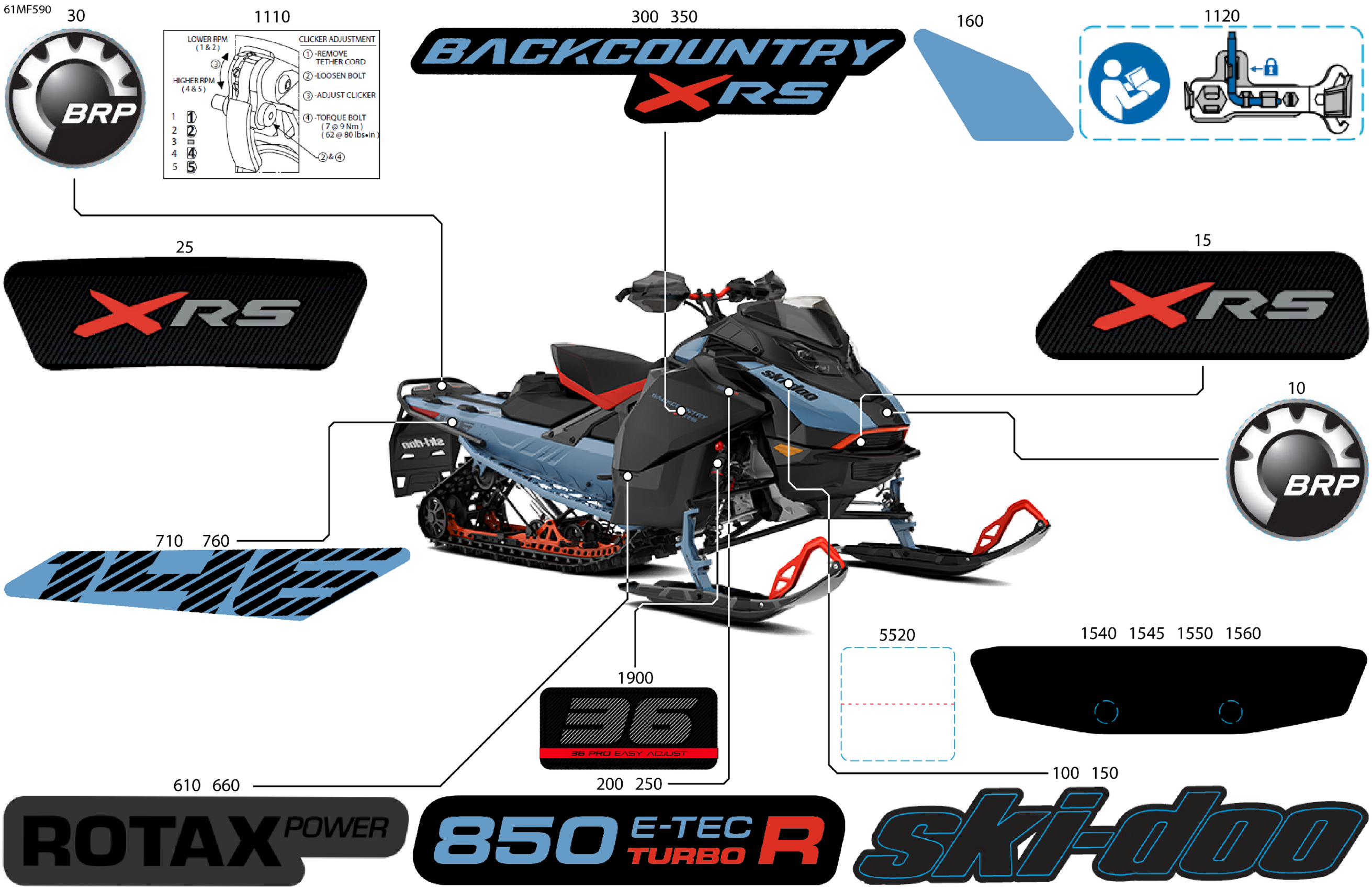 Ski-Doo North America - BACKCOUNTRY - X-RS - 850 E-TEC Turbo R - UZT3 - Scandi Blue - 16X146X2.0P Track - SHOT starter, 2026 07- Body - Decals Diagram