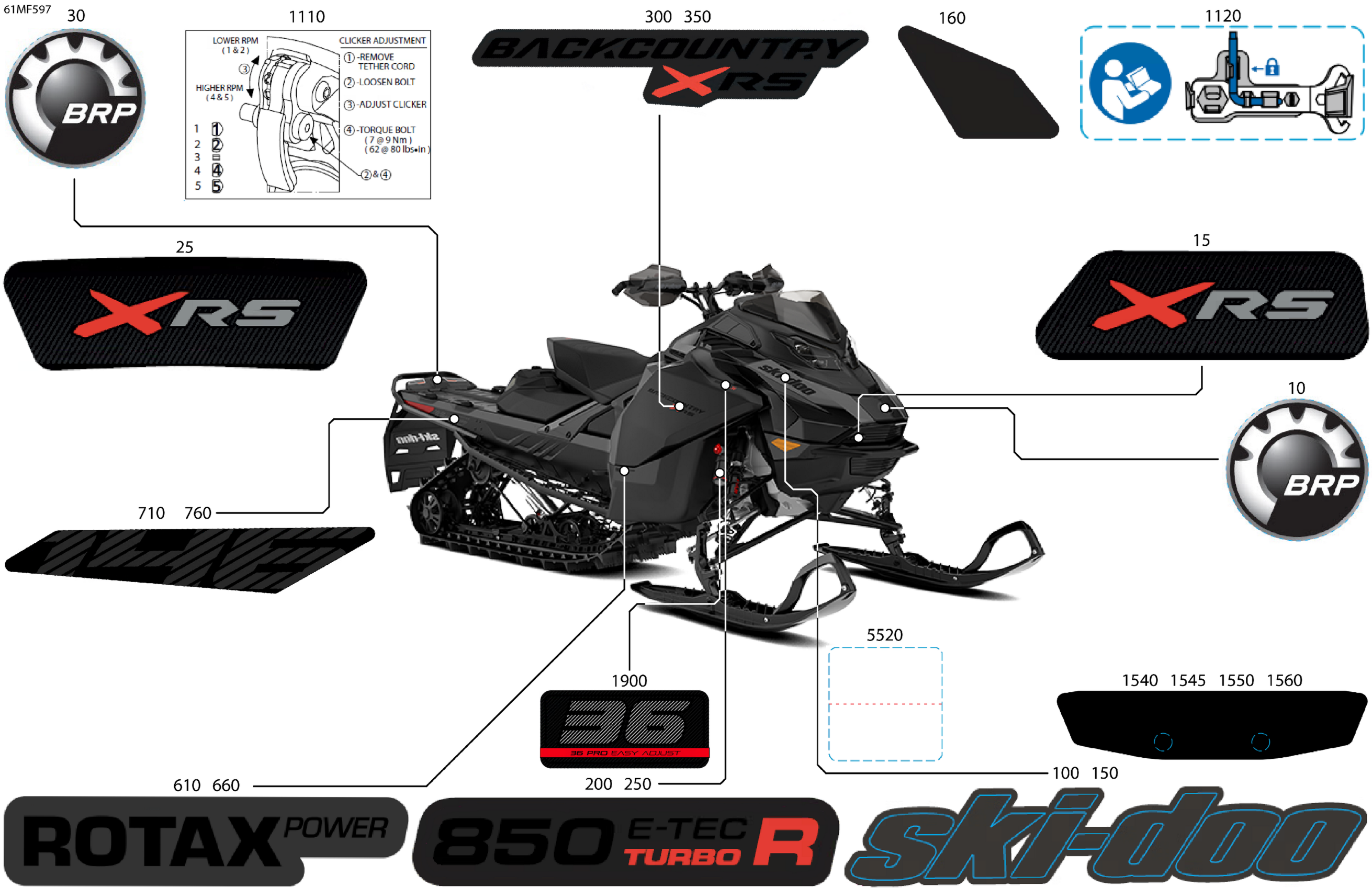 Ski-Doo North America - BACKCOUNTRY - X-RS - 850 E-TEC Turbo R - UZTU - Deep Black - 16X146X2.0P Track - SHOT starter, 2026 07- Body - Decals Diagram