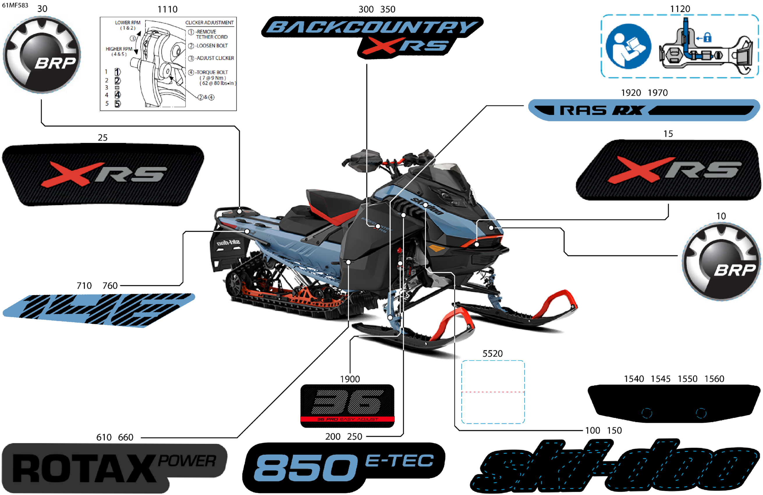 Ski-Doo North America - BACKCOUNTRY - X-RS - 850 E-TEC - UYTP - Scandi Blue - 15X146X1.5S Track, 2026 07- Body - Decals Diagram