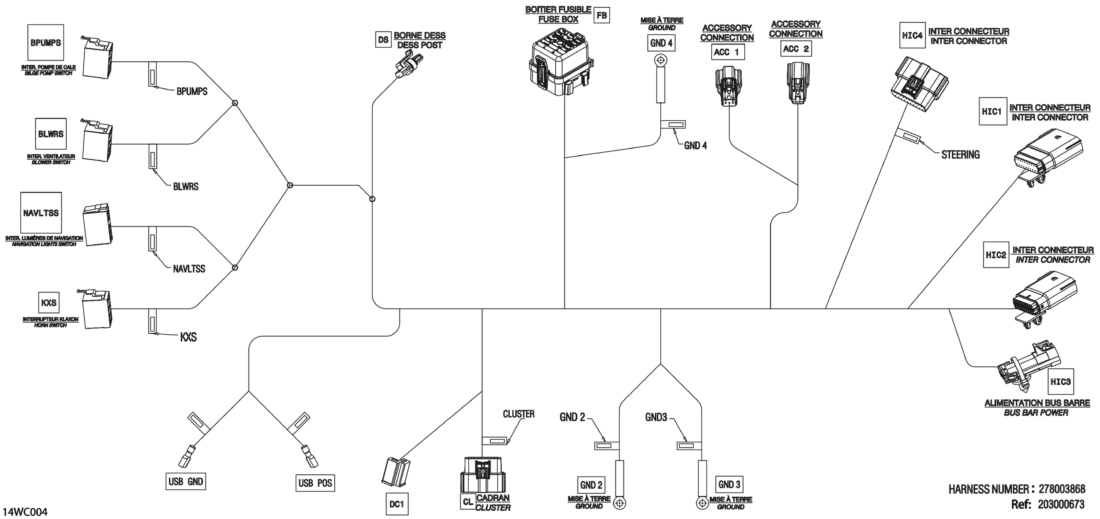 Sea-doo North America - BASE Compact - 130 - 41PJ - Blue - Trailer Paint - NO CAT, 2023 02- MECHANICS - Console Wiring Harness - 278003868 Diagram