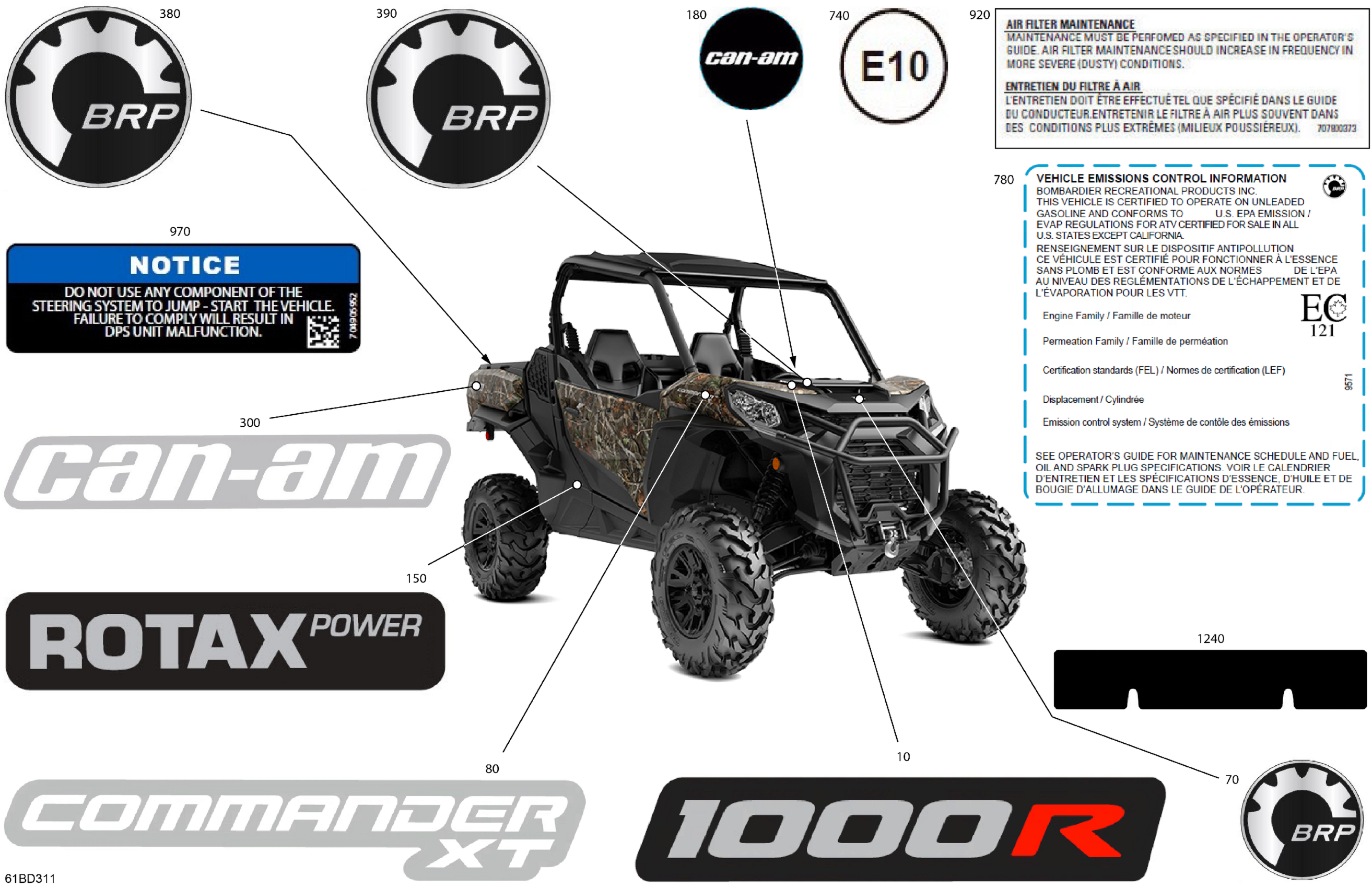 Can-Am Commander 1000R EFI - XT - 6GRF - Wildland Camo - 64" Width, 2024 Body - Decals Diagram