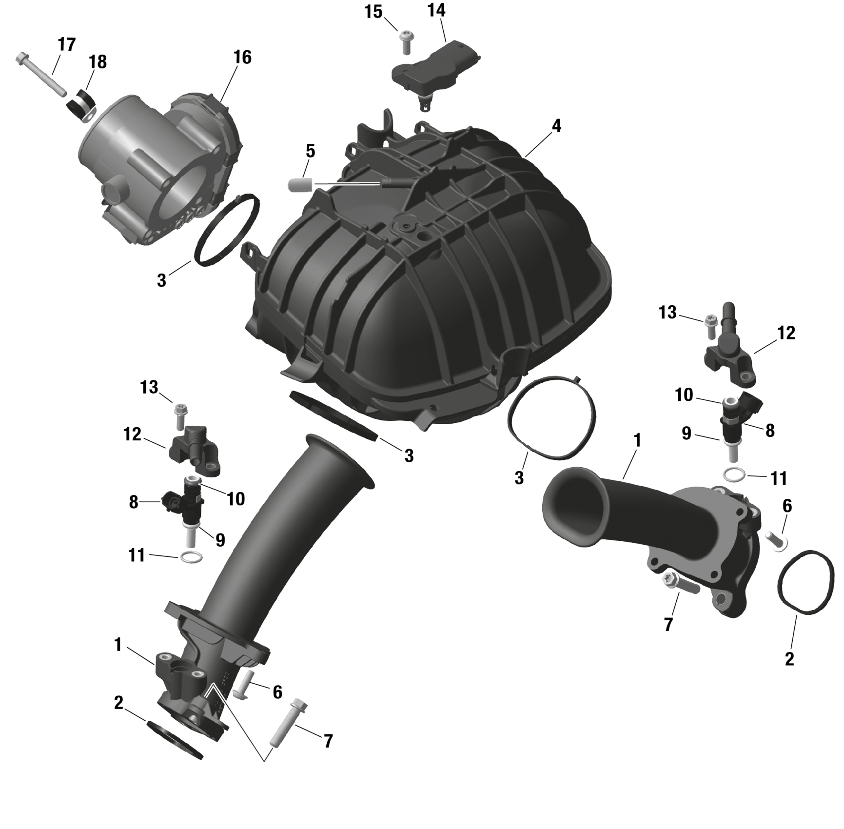 Can-Am Commander MAX 1000R EFI - XMR - 6CRD - Wildland Camo - 64" Width, 2024 ROTAX - Air Intake Manifold And Throttle Body Diagram