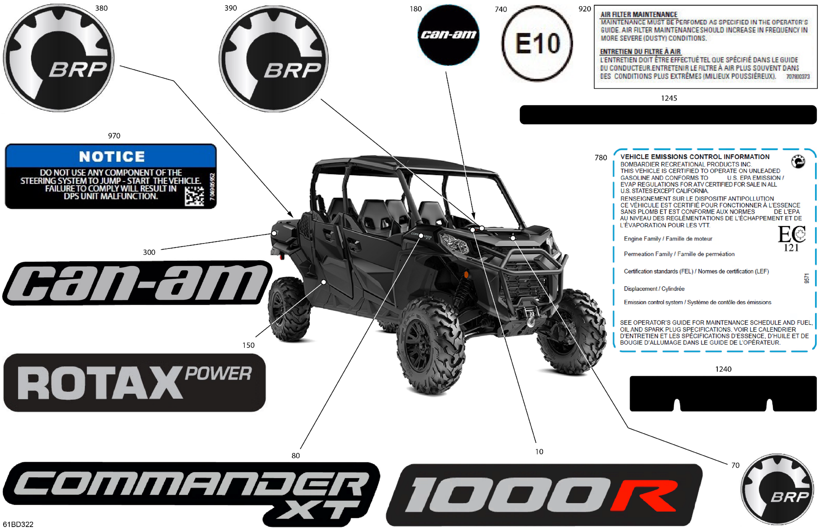 Can-Am Commander MAX 1000R EFI - XT - 6KRD - Timeless Black Metallic - 64" Width, 2024 Body - Decals Diagram