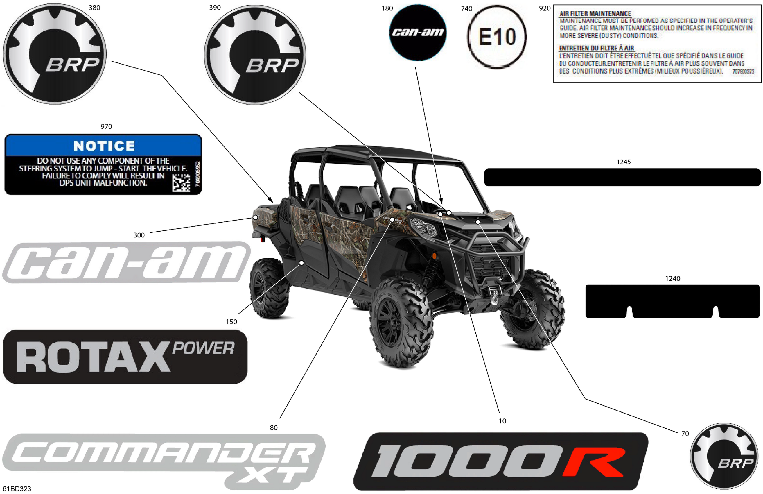 Can-Am Commander MAX 1000R EFI - XT - 6KRE - Wildland Camo - 64" Width CALI, 2024 Body - Decals Diagram