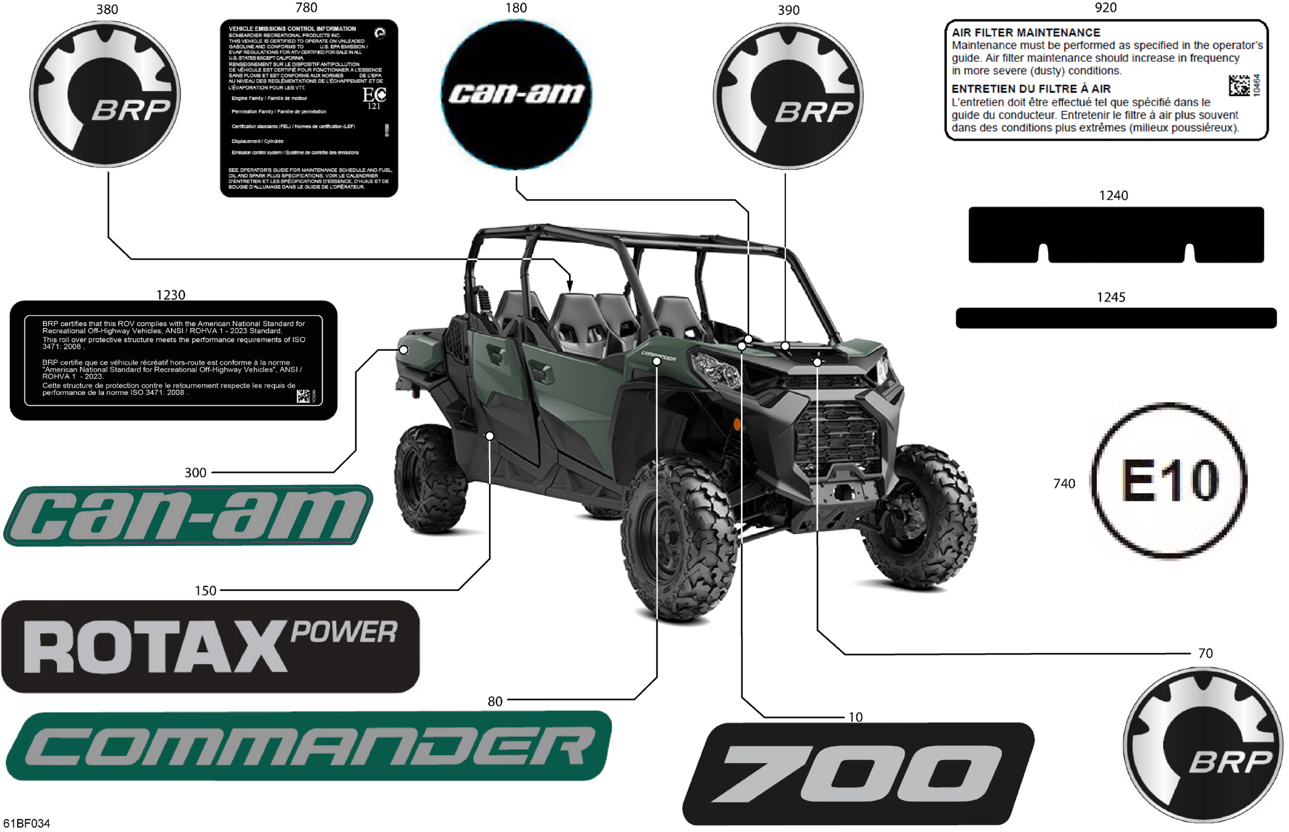 Can-Am Commander MAX - 700 EFI - DPS - 6HTF - Compass Green - 60" Width, 2026 Body - Decals Diagram
