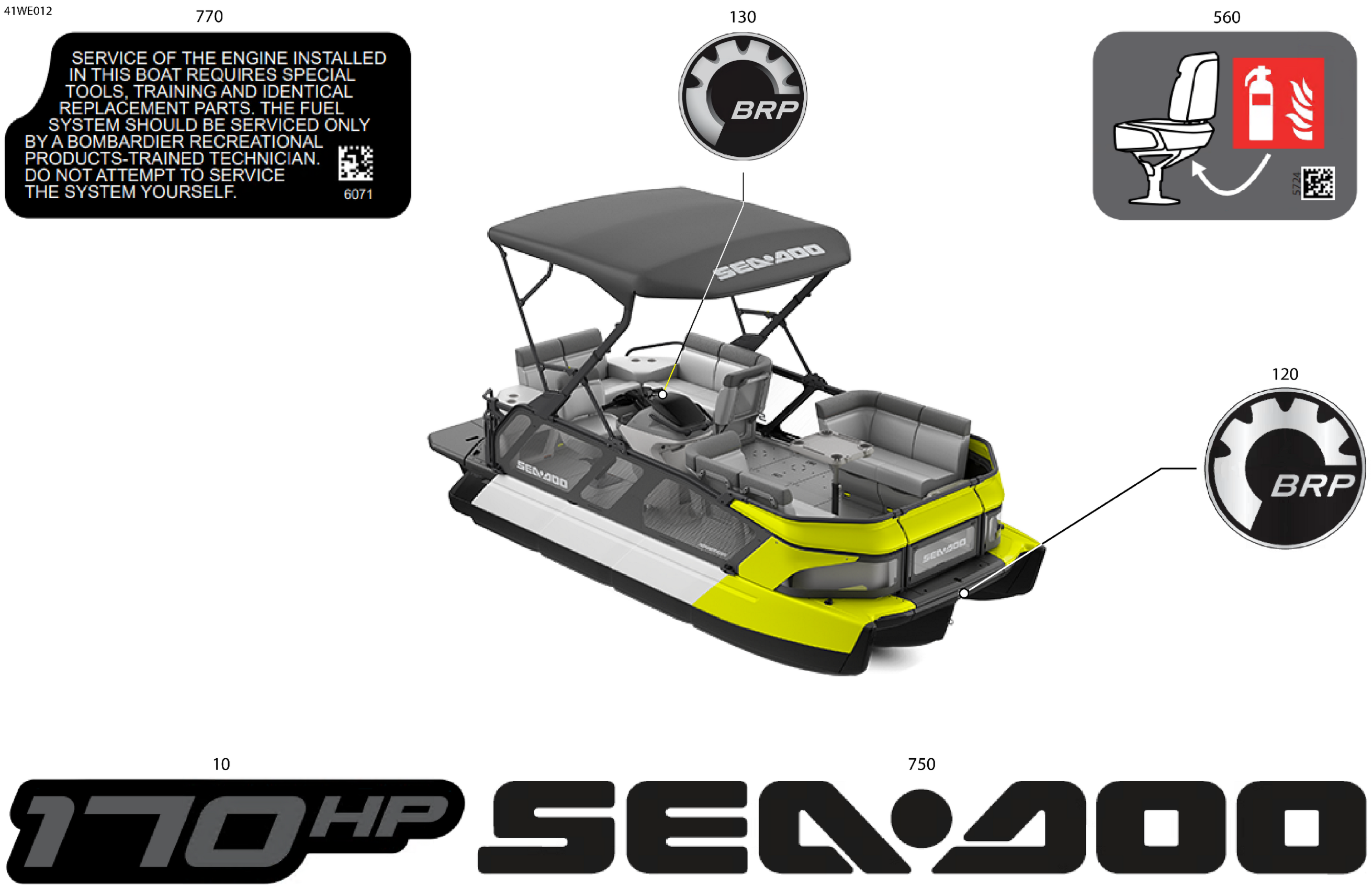 Sea-doo North America - CRUISE 18 - 170 - 44SC - Neon Yellow - Trailer Paint - CAT2B - 2025 06- BODY - Feature Decals Diagram