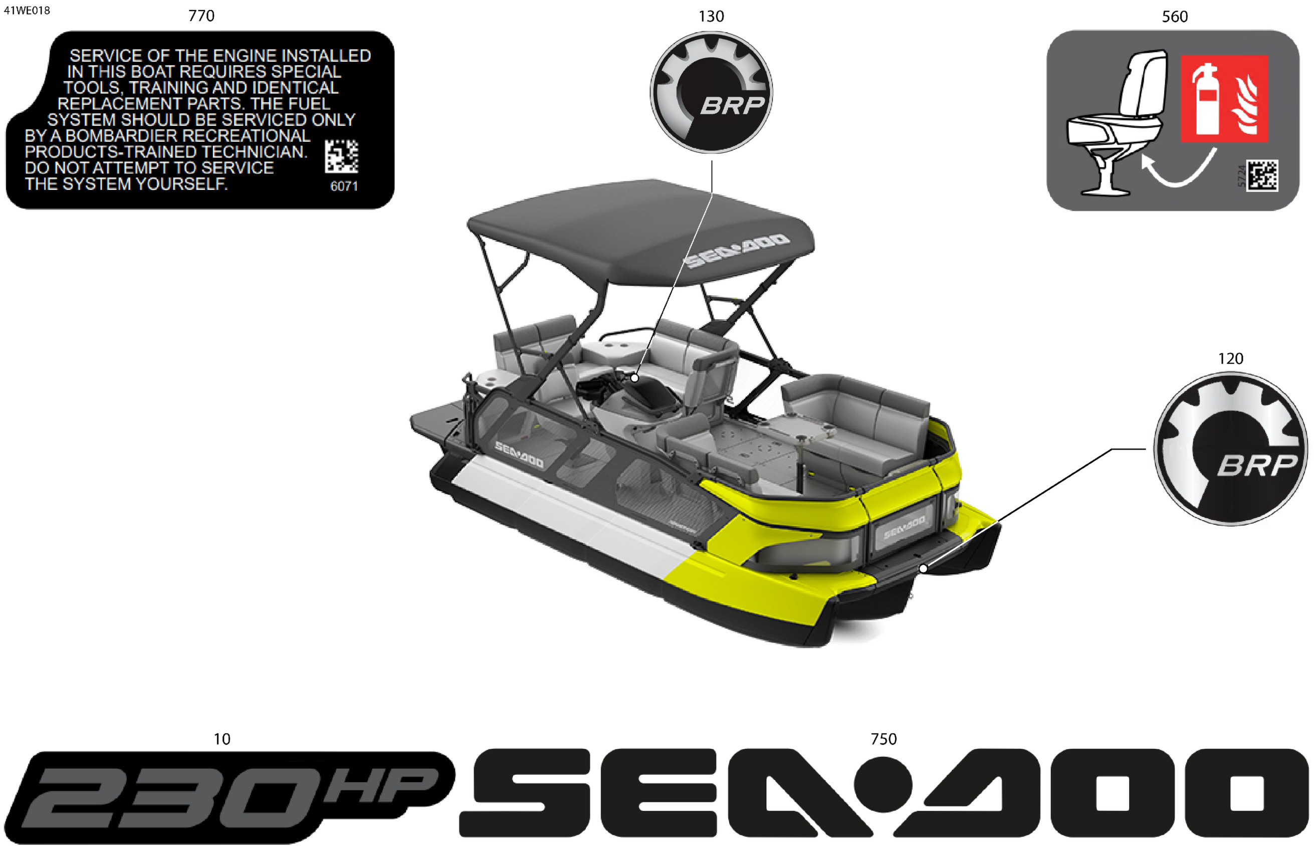 Sea-doo North America - CRUISE 18 - 230 - 45SC - Neon Yellow - Trailer Paint - CAT2B - 2025 06- BODY - Feature Decals Diagram