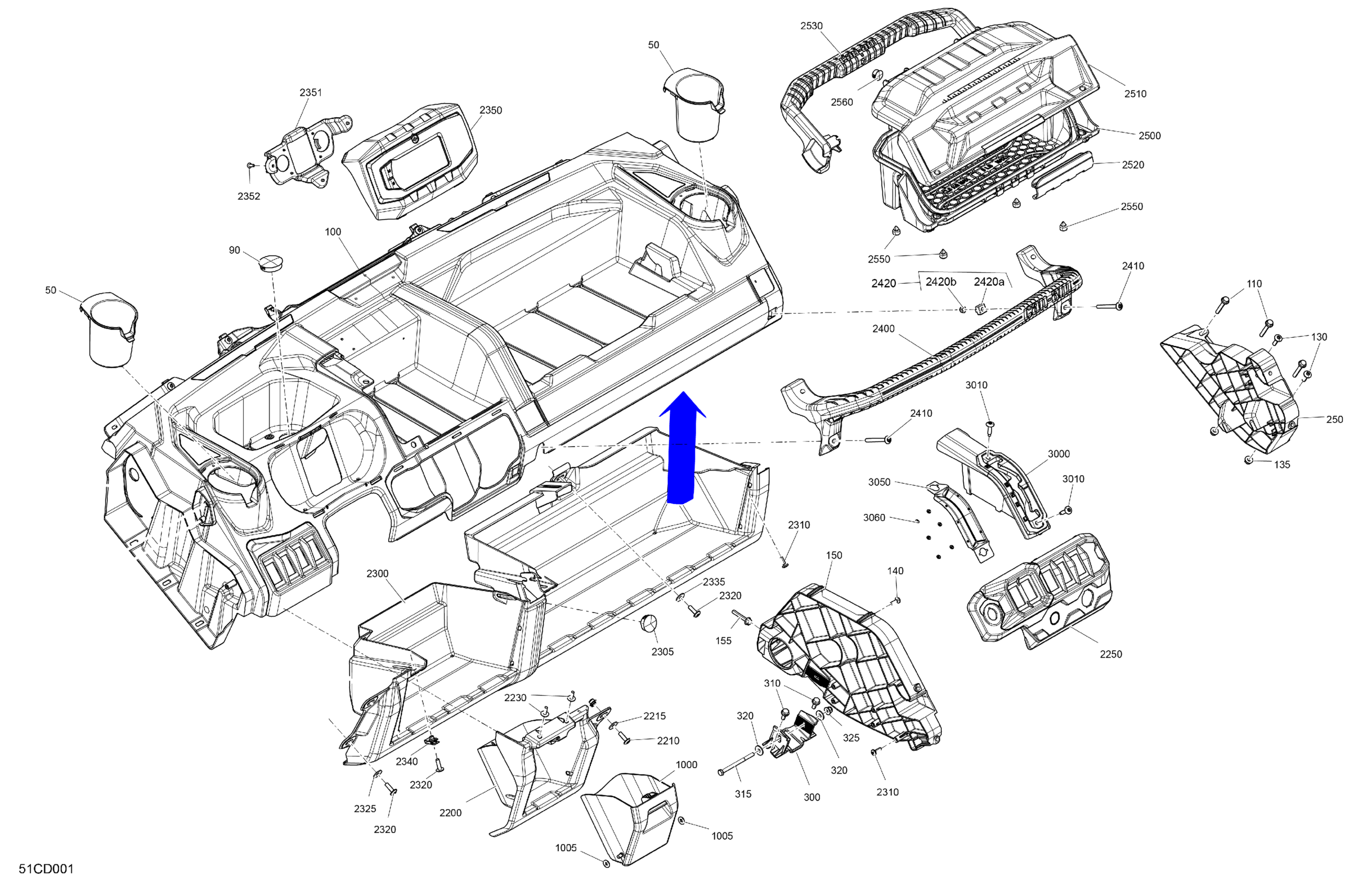 Can-Am Defender HD10 - DPS - 8BRF - Timeless Black Metallic - 64" Width, 2024 Cab Interior - Dashboard Diagram