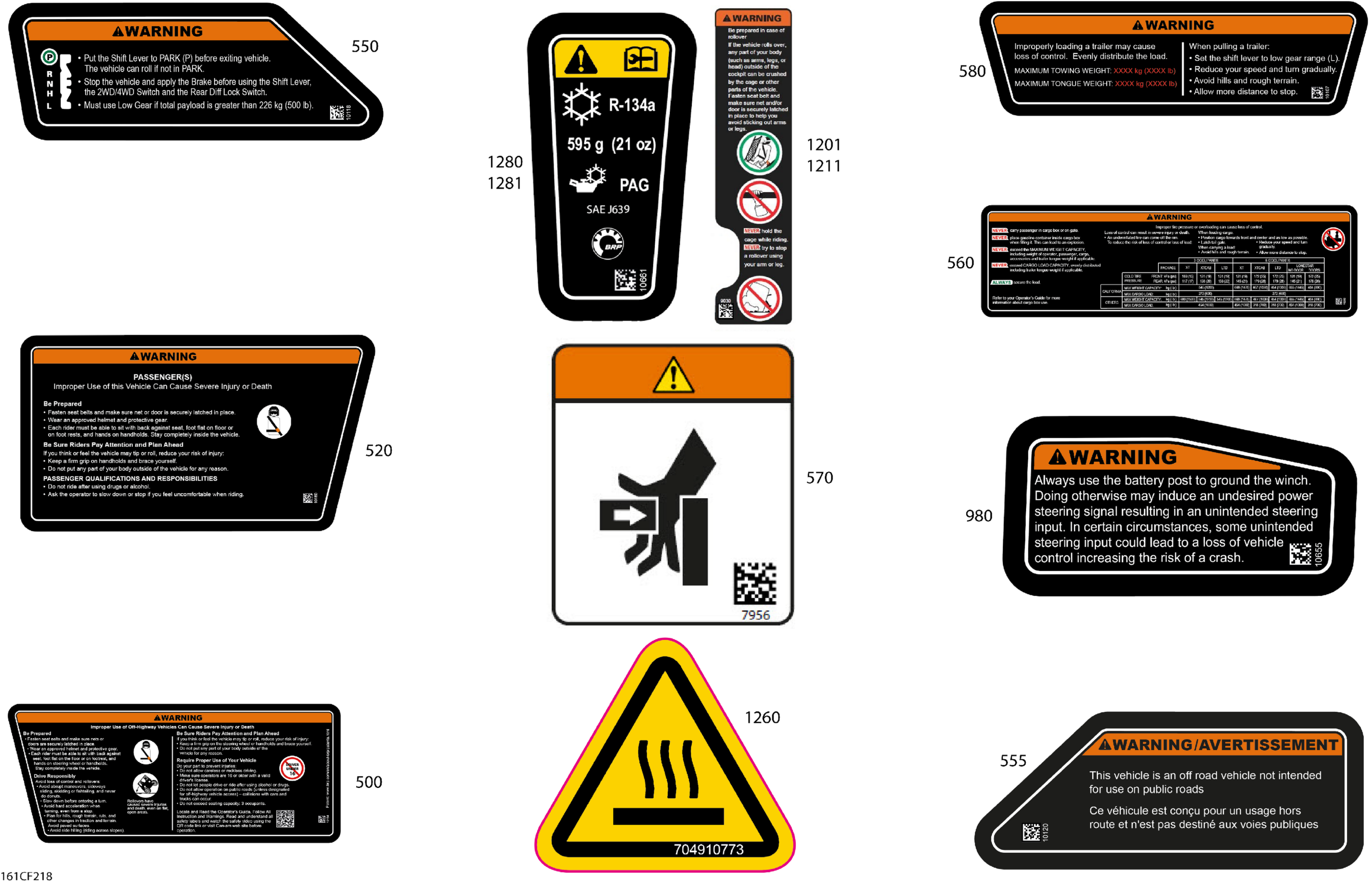 Can-Am Defender - HD11 - XT CAB - 7LTU - Dusty Navy Satin - 65" Width - CALI, 2026 Body - Warning Decals Diagram