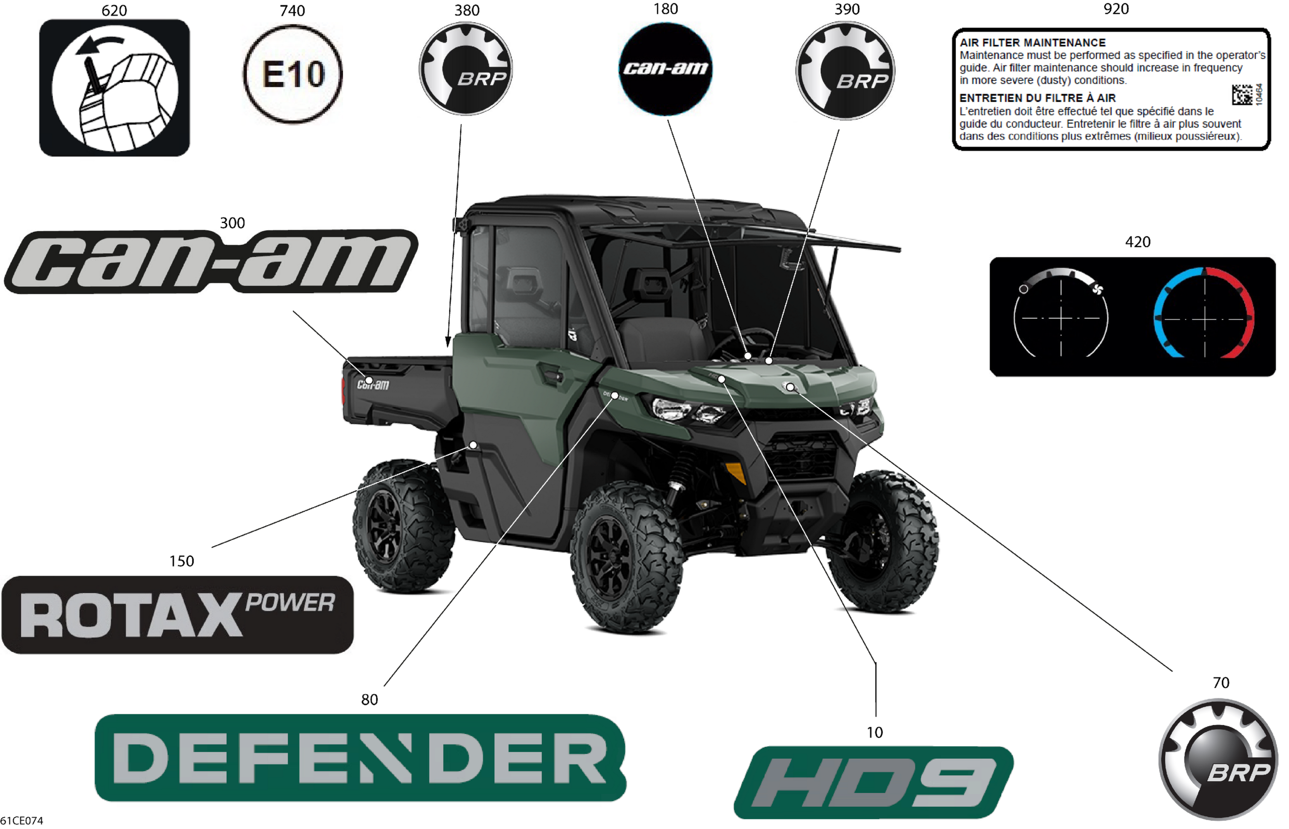Can-Am Defender - HD9 - DPS CAB - 8USC - Compass Green - 67" Width CALI, 2025 Body - Decals Diagram