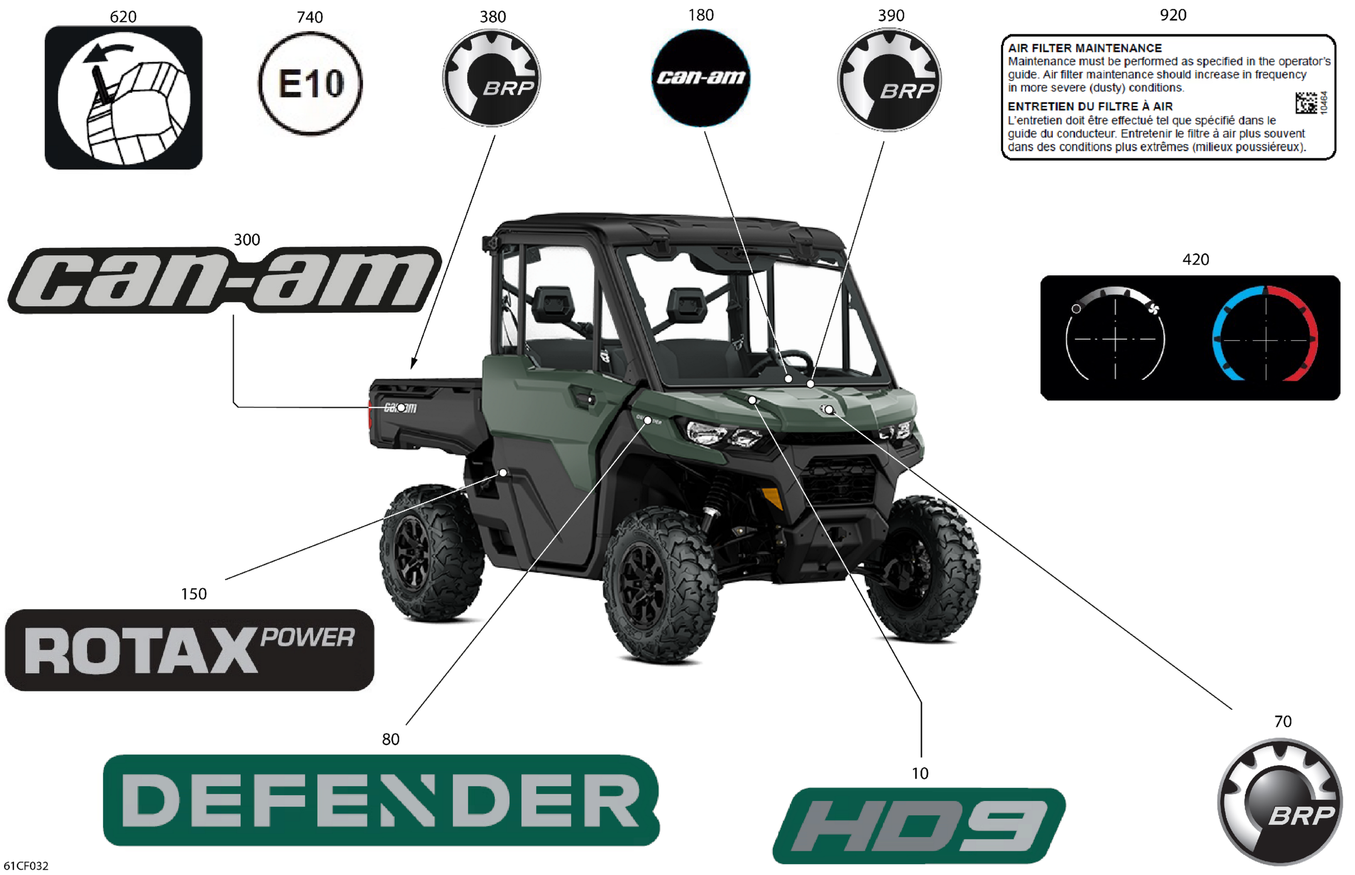 Can-Am Defender - HD9 - DPS CAB - 8UTE - Compass Green - 62" Width - CALI, 2026 Body - Decals Diagram