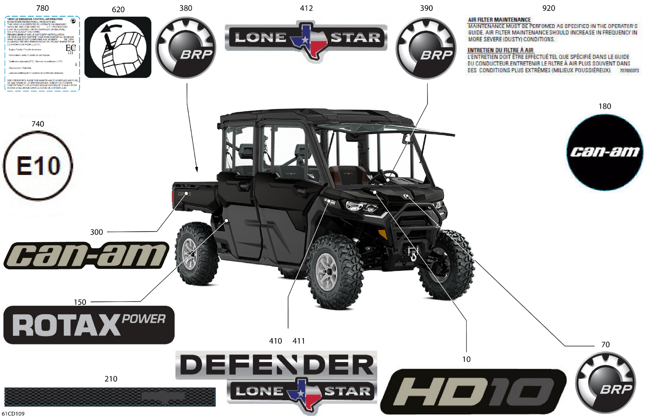 Can-Am Defender MAX HD10 - Lone Star Edition CAB - 6LRA - Night Black - 67" Width, 2024 Body - Decals Diagram