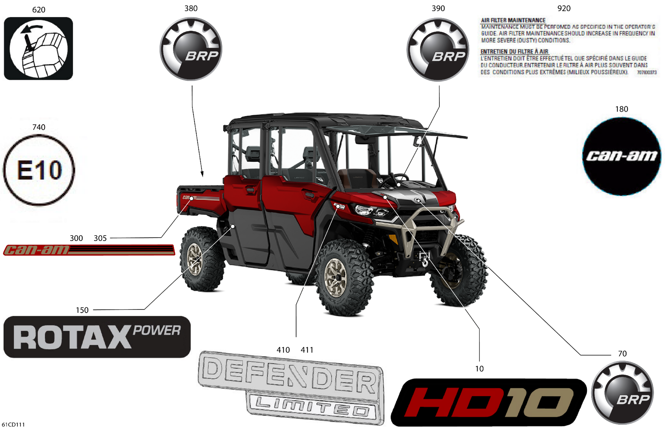 Can-Am Defender MAX HD10 - LTD CAB - 6MRA - Fiery Red Metallic - 67" Width CALI, 2024 Body - Decals Diagram