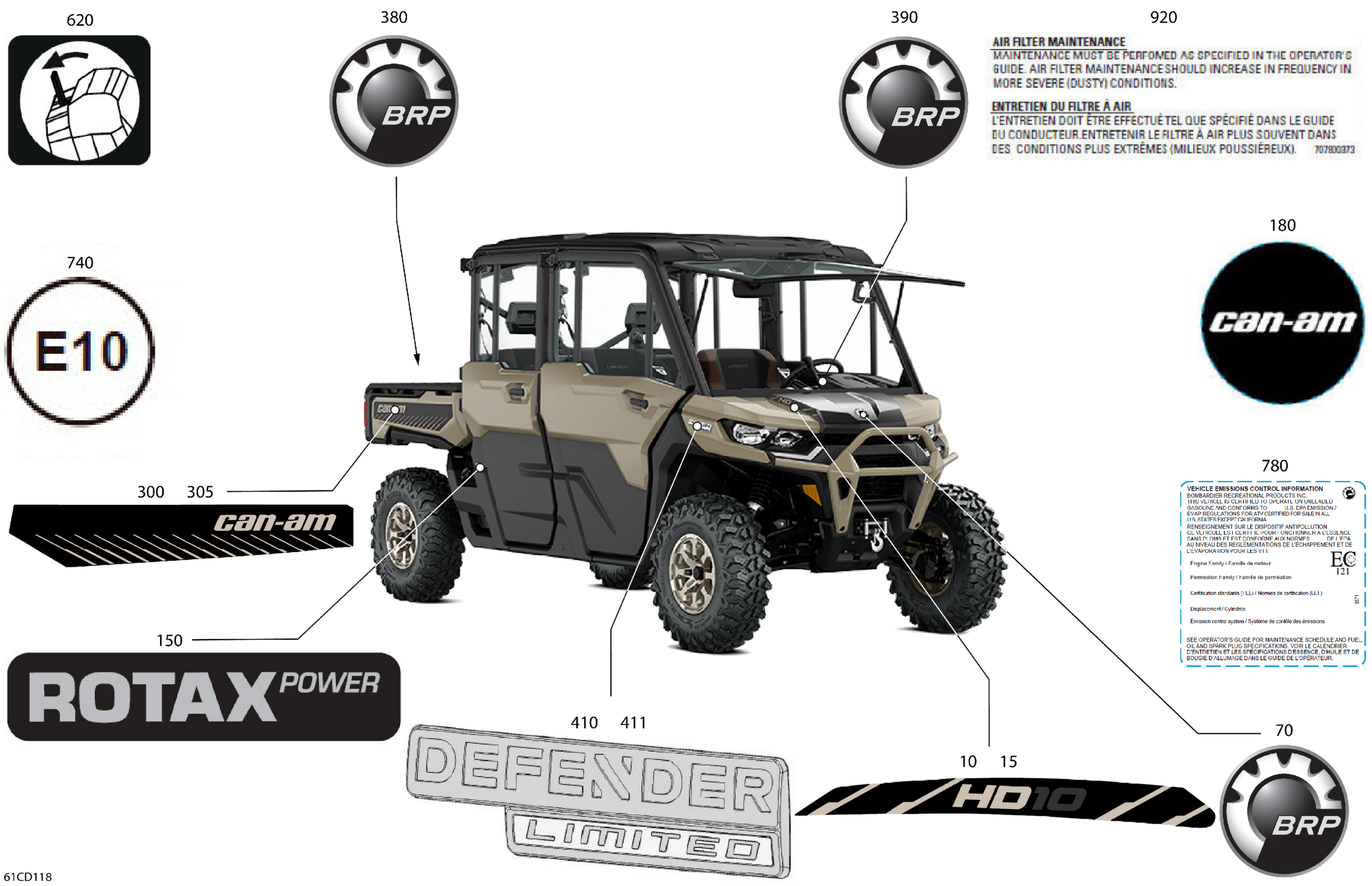 Can-Am Defender MAX HD10 - LTD CAB - 6MRH - Macchiato Satin - 67" Width, 2024 Body - Decals Diagram