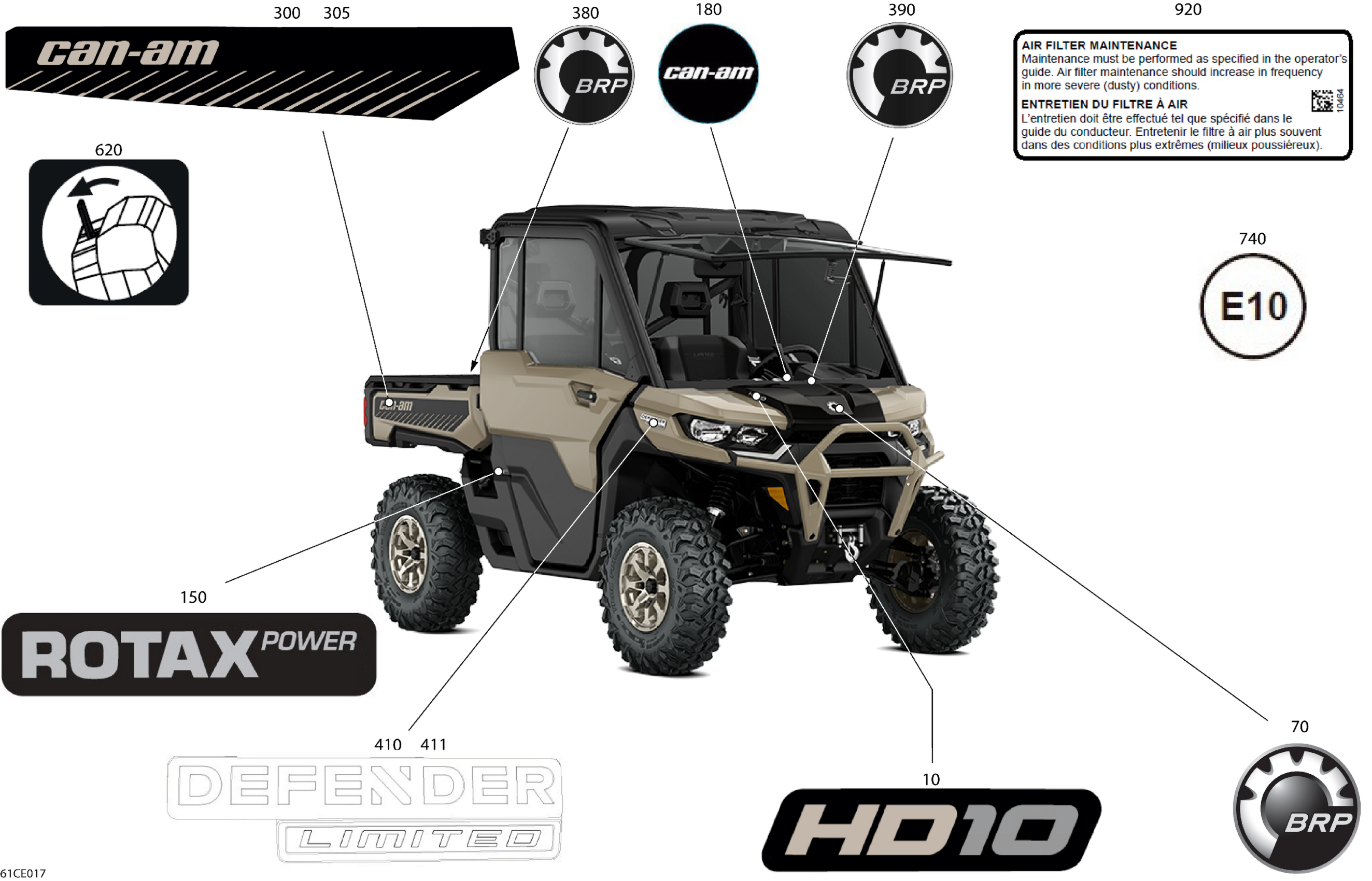 Can-Am Defender Max - HD10 - LTD CAB - 6MSG - Macchiato Satin - 65" Width CALI, 2025 Body - Decals Diagram