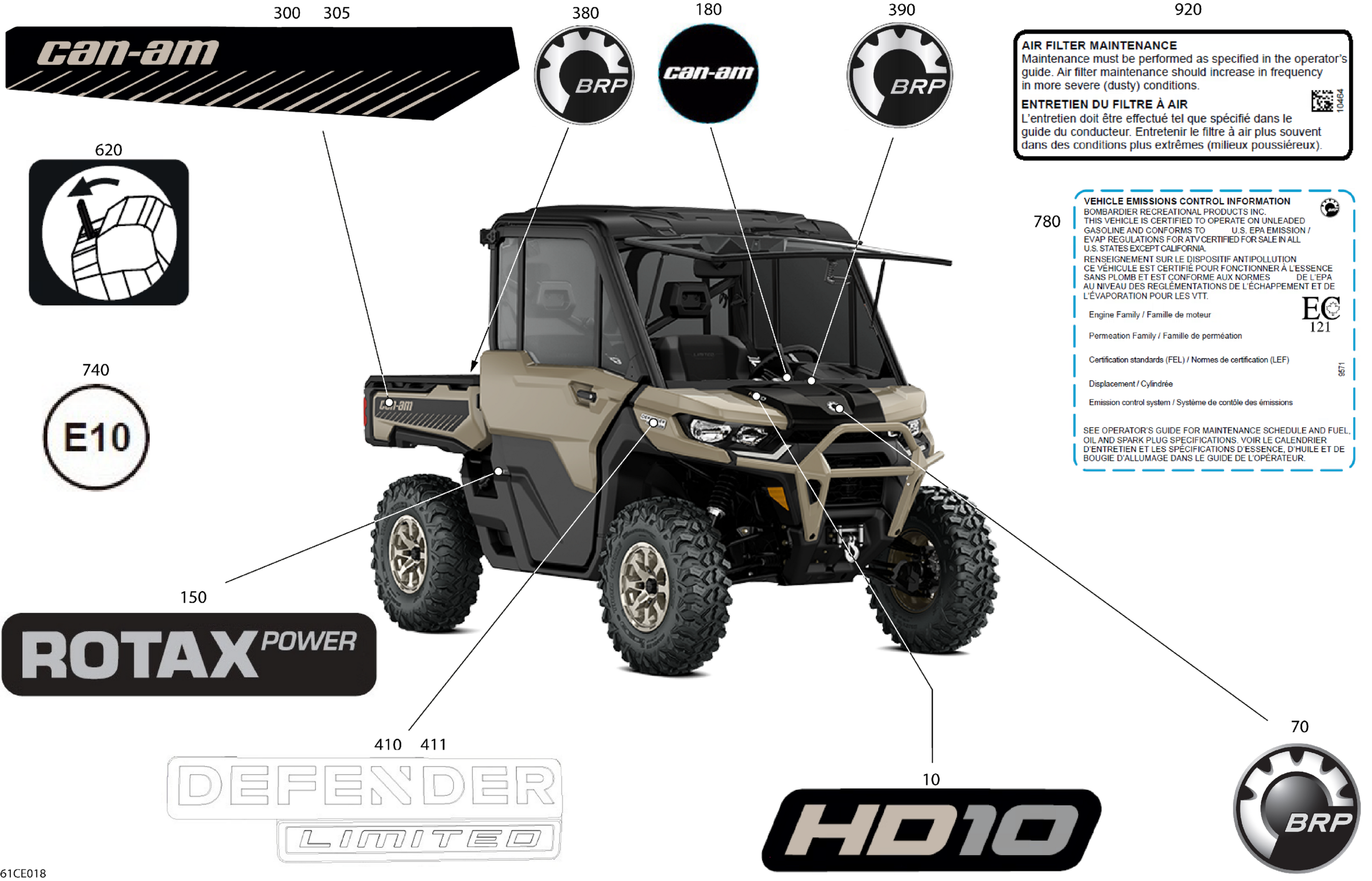 Can-Am Defender Max - HD10 - LTD CAB - 6MSH - Macchiato Satin - 65" Width - 2025 Body - Decals Diagram