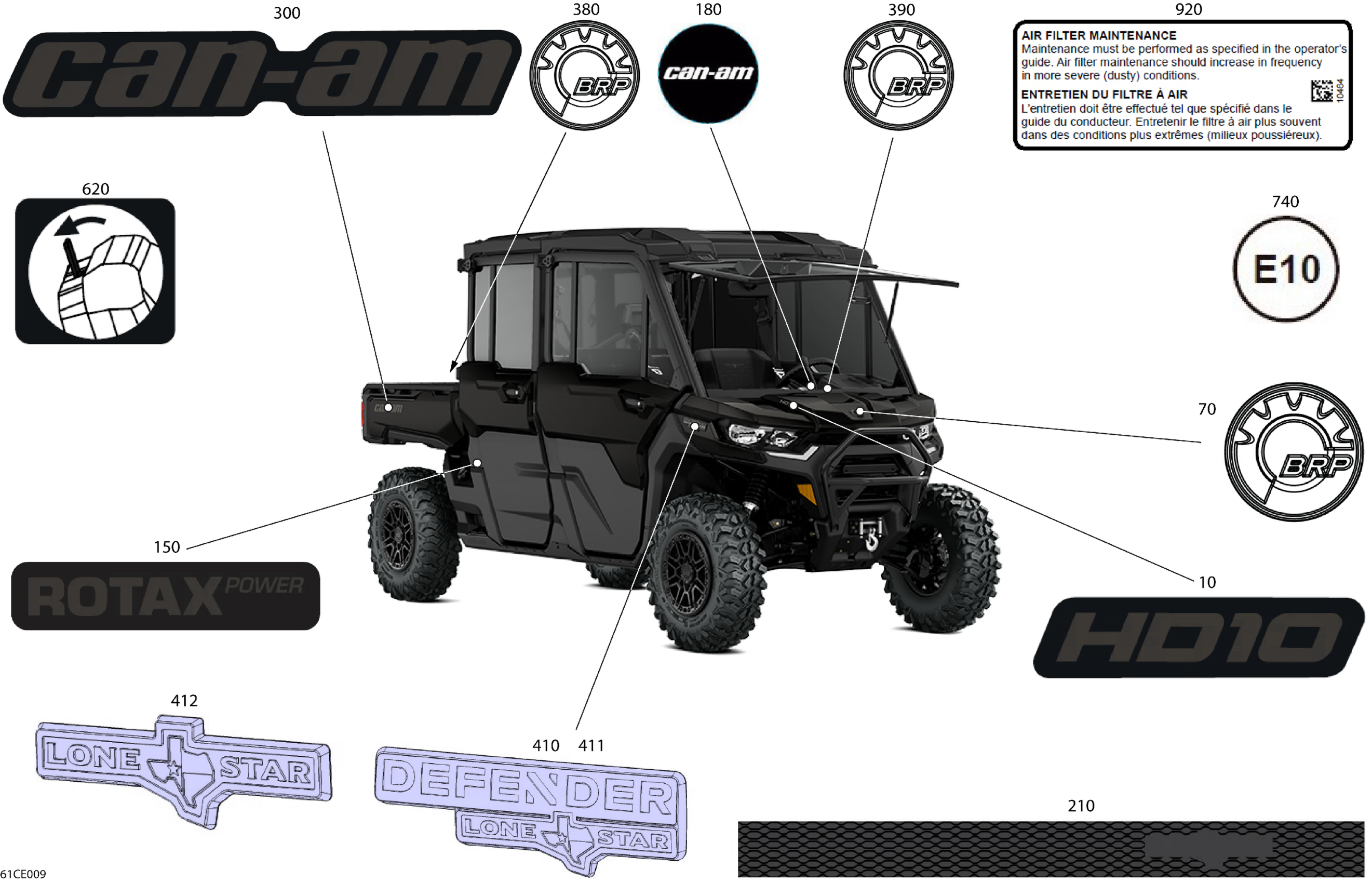 Can-Am Defender Max - HD10 - TEX CAB - 6LSB - Stealth Black - 65" Width CALI, 2025 Body - Decals Diagram