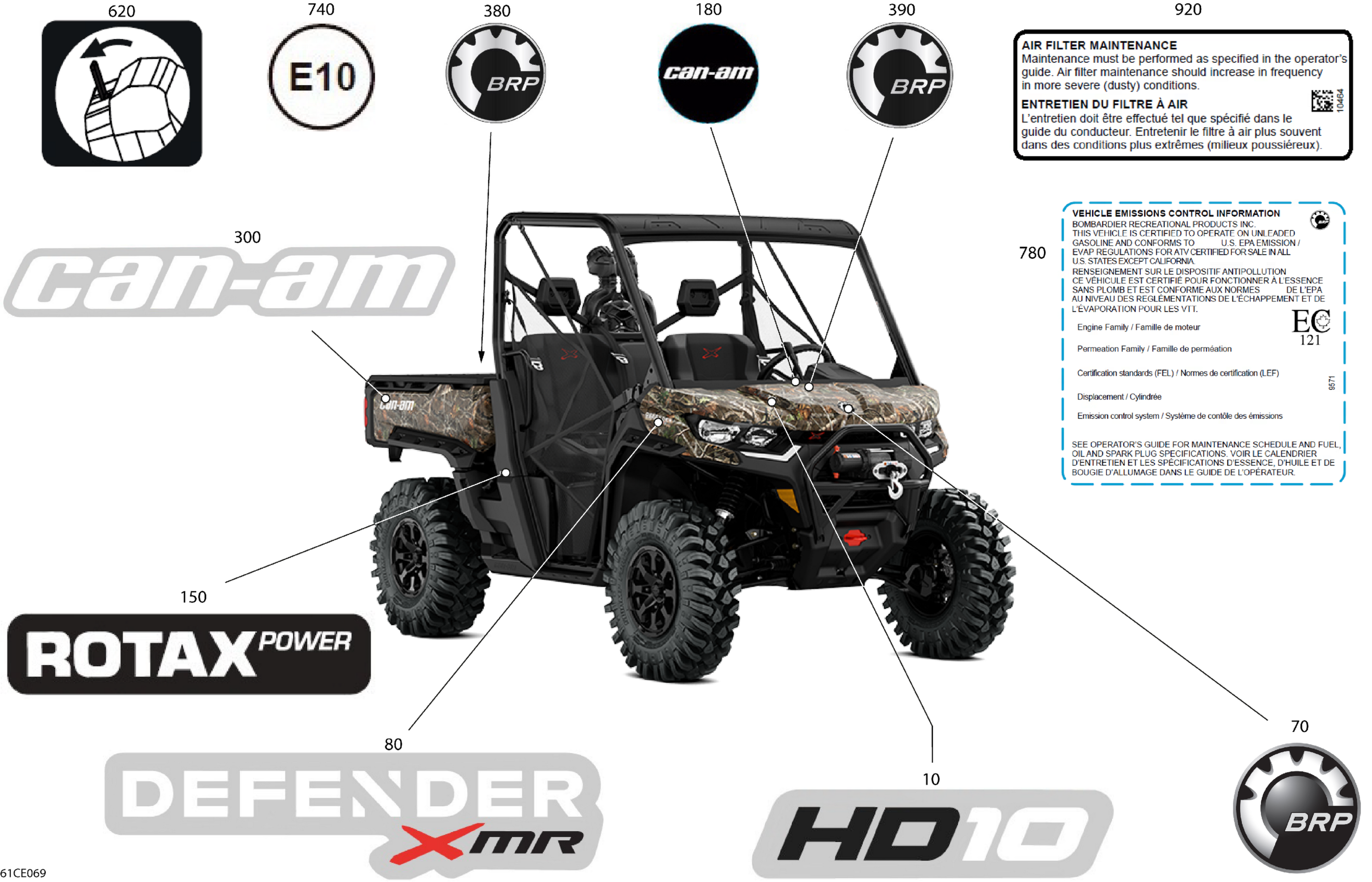 Can-Am Defender Max - HD10 - XMR - 8PSC - Wildland Camo - 67" Width - 2025 Body - Decals Diagram