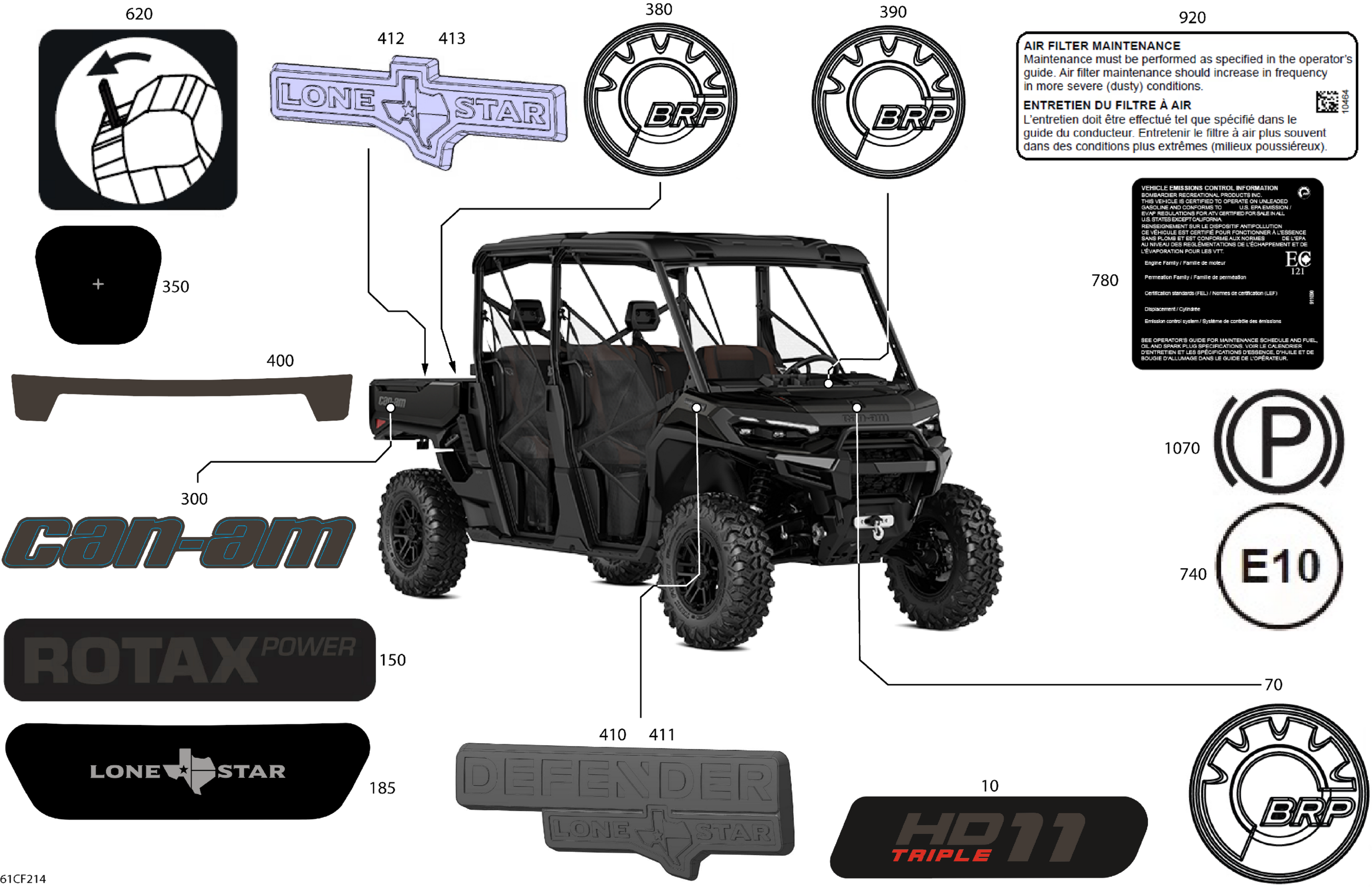Can-Am Defender MAX - HD11 - Lone Star - 6UTA - Stealth Black - 65" Width, 2026 Body - Decals Diagram