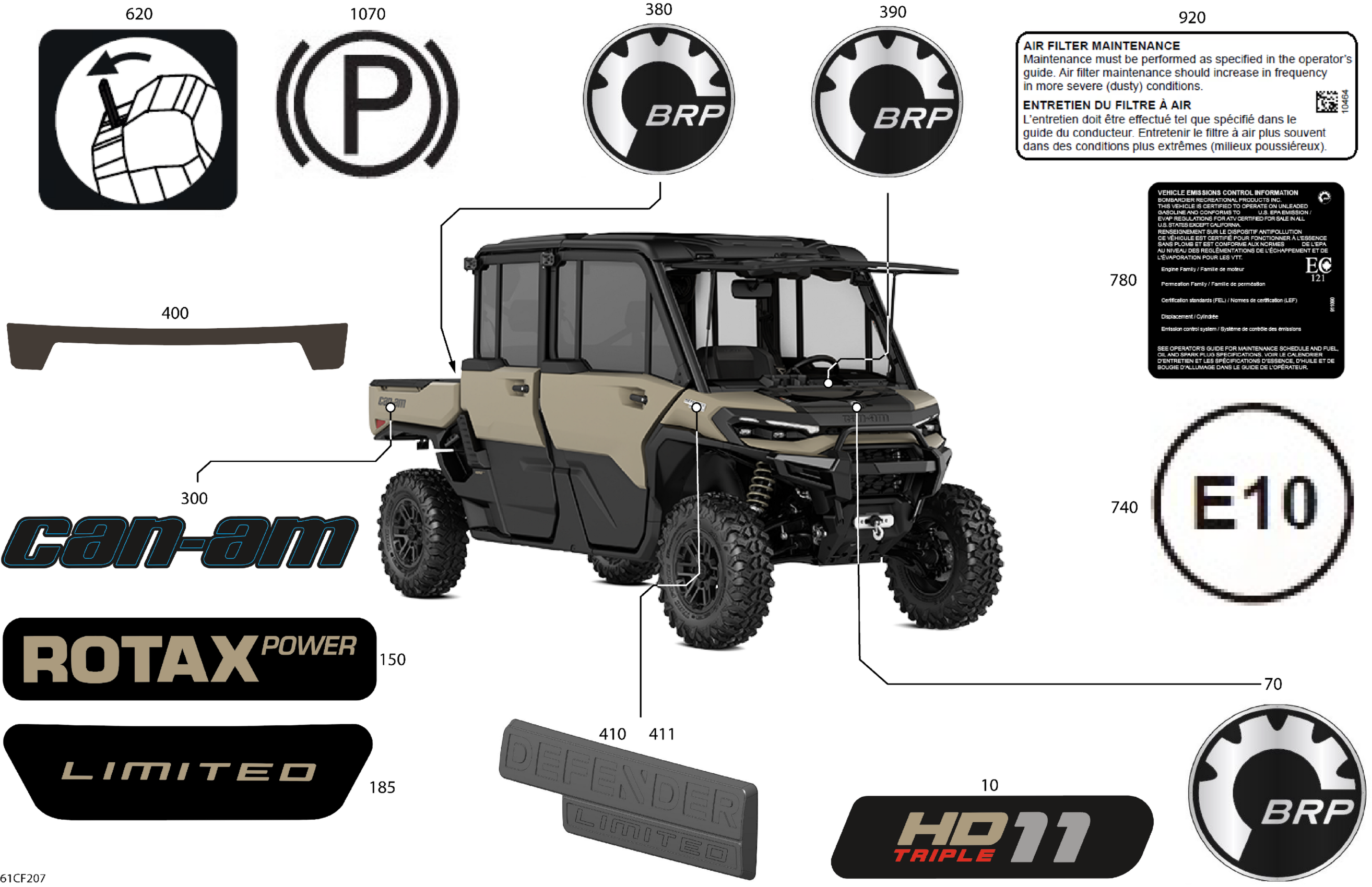 Can-Am Defender MAX - HD11 - LTD CAB - 6MTD - Macchiato Satin - 65" Width, 2026 Body - Decals Diagram