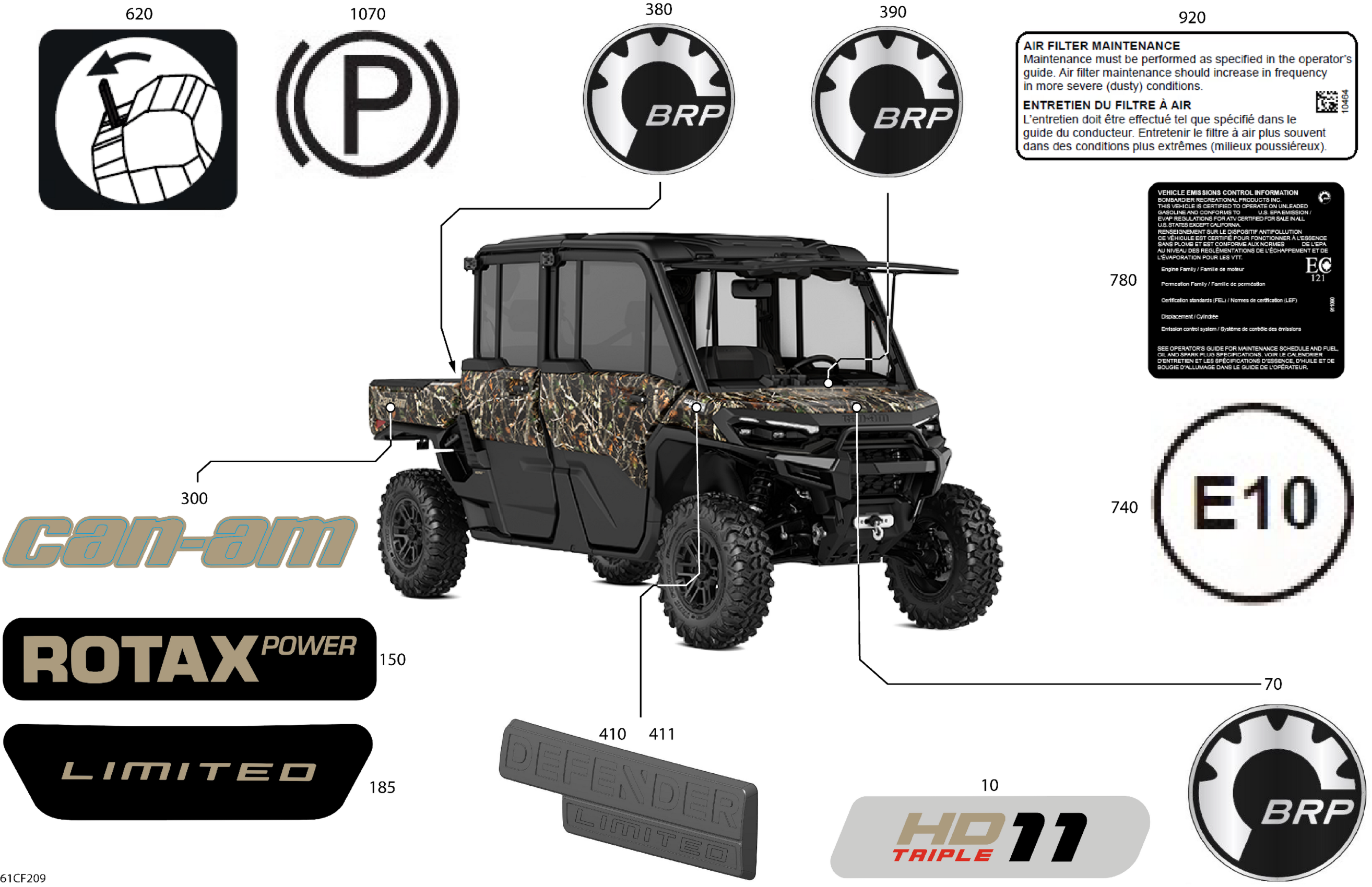 Can-Am Defender MAX - HD11 - LTD CAB - 6MTF - Dark Wildland Camo - 65" Width, 2026 Body - Decals Diagram