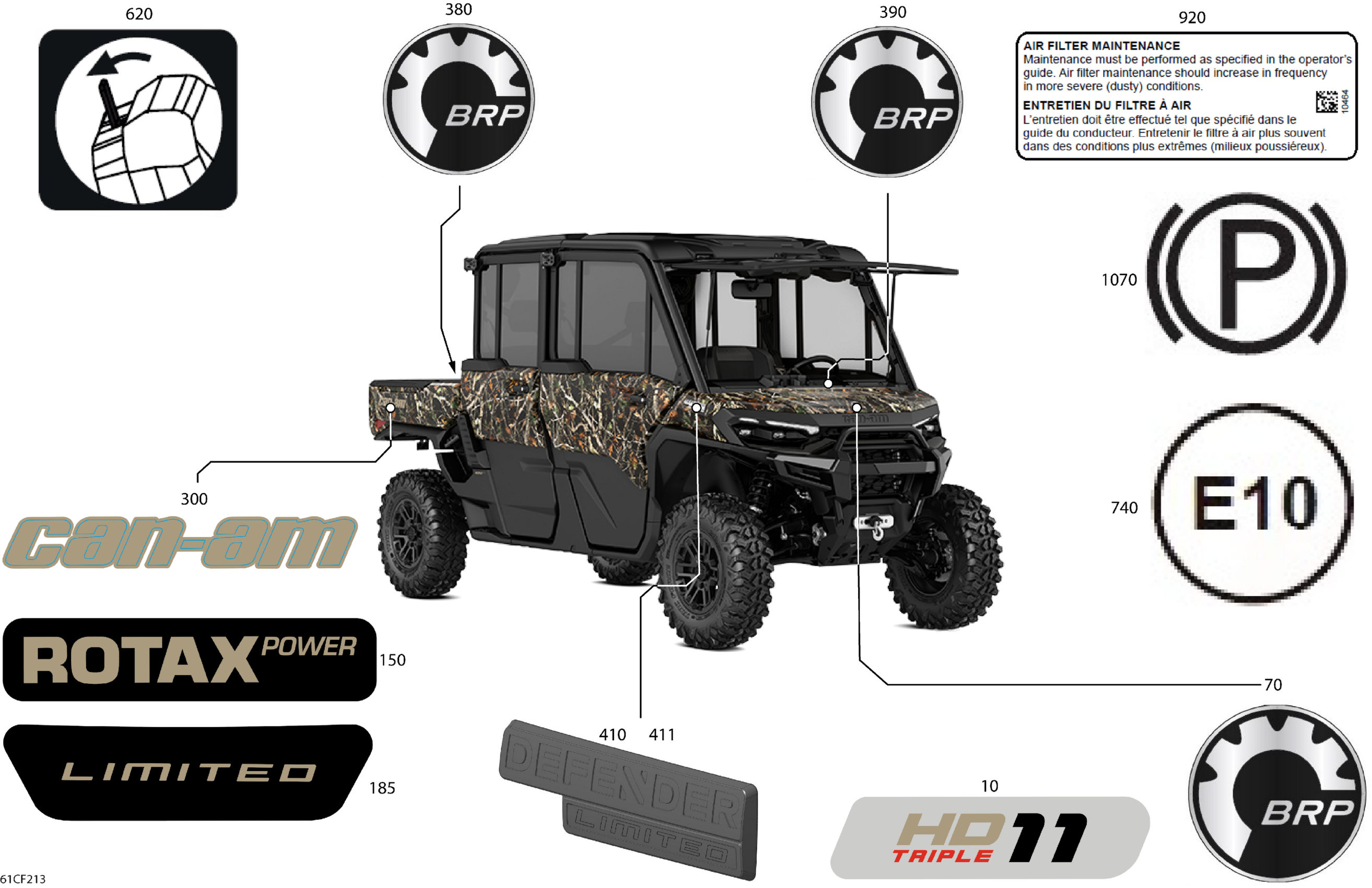 Can-Am Defender MAX - HD11 - LTD CAB - 6MTK - Dark Wildland Camo - 65" Width - CALI, 2026 Body - Decals Diagram