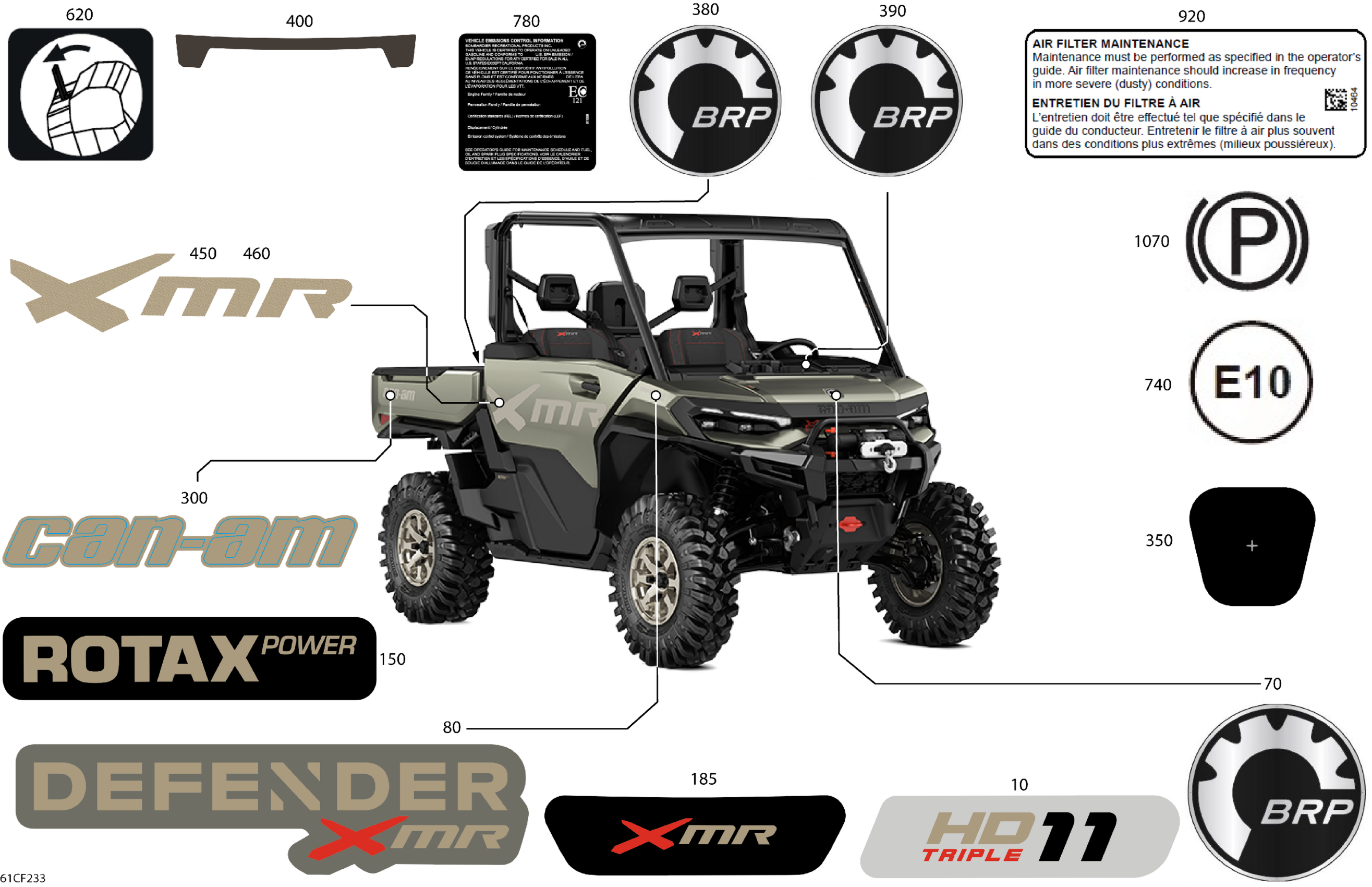 Can-Am Defender MAX - HD11 - XMR - 8PTB - Loft Green Satin - 65" Width, 2026 Body - Decals Diagram