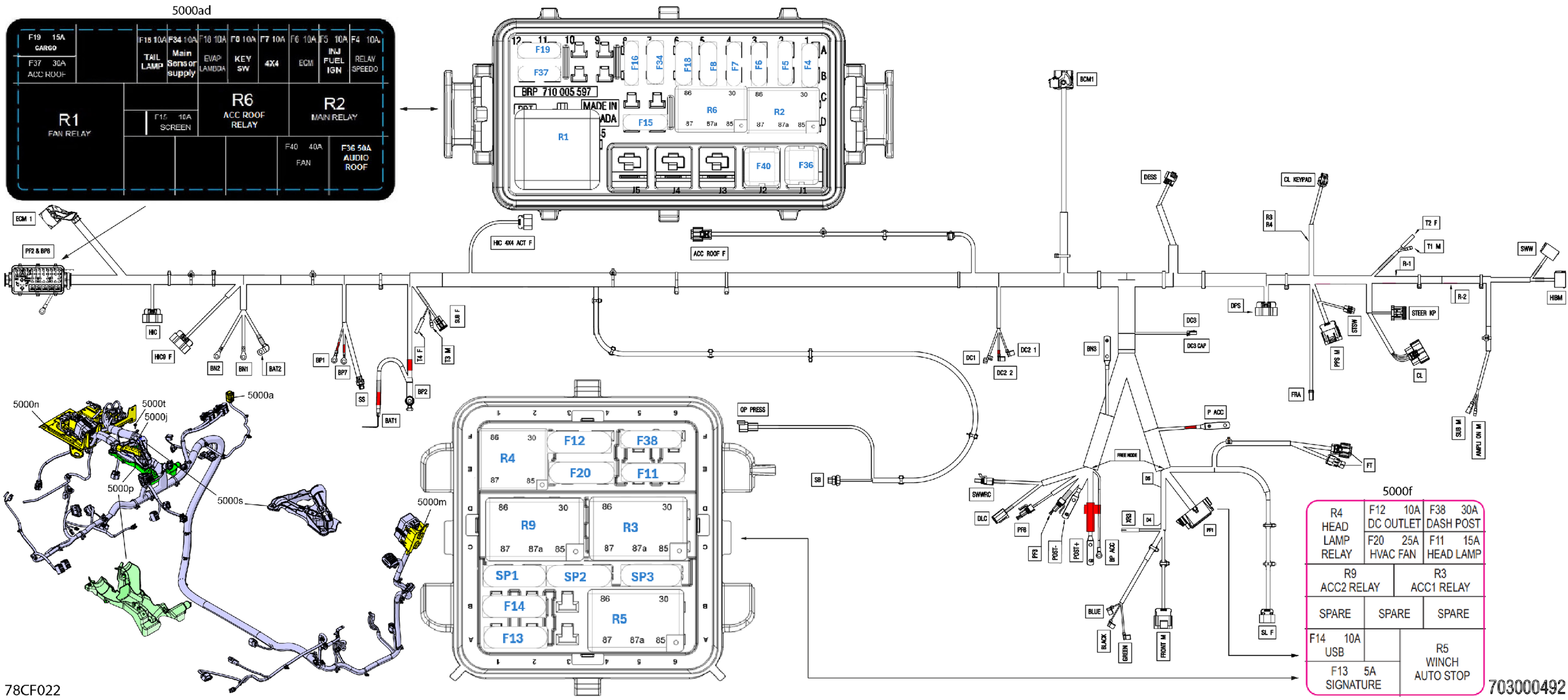Can-Am Defender MAX - HD11 - XMR - 8PTC - Dark Wildland Camo - 65" Width, 2026 Electric - Main Harness - 710010179 Diagram