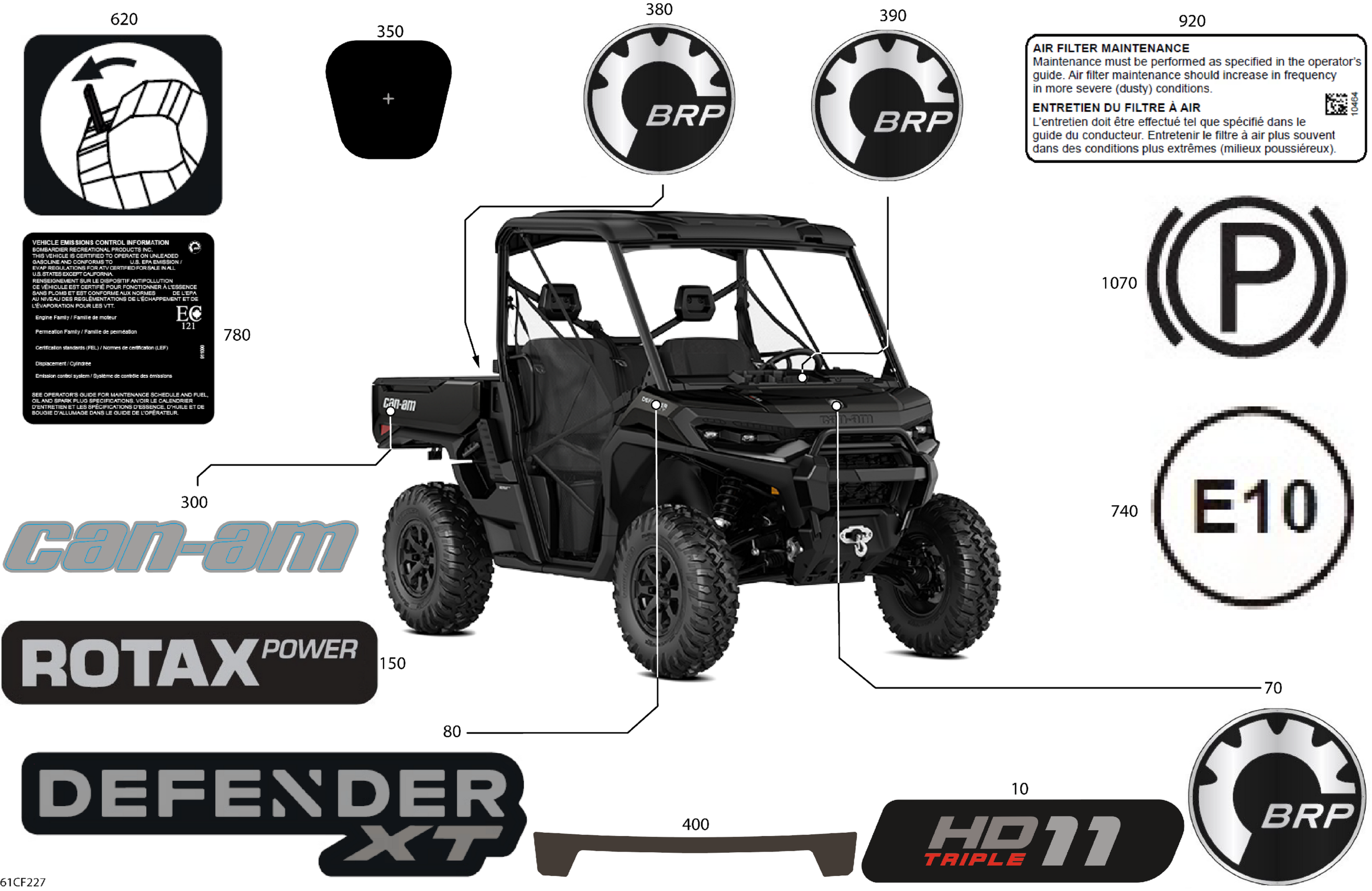Can-Am Defender MAX - HD11 - XT - 8KTU - Stealth Black - 65" Width, 2026 Body - Decals Diagram