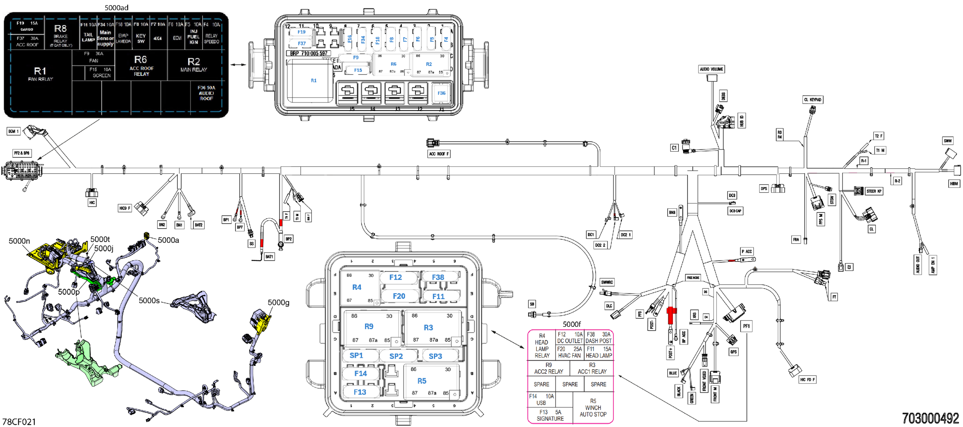 Can-Am Defender MAX - HD11 - XT - 8KTV - Stealth Black - 65" Width - CALI, 2026 Electric - Main Harness - 710010579 Diagram