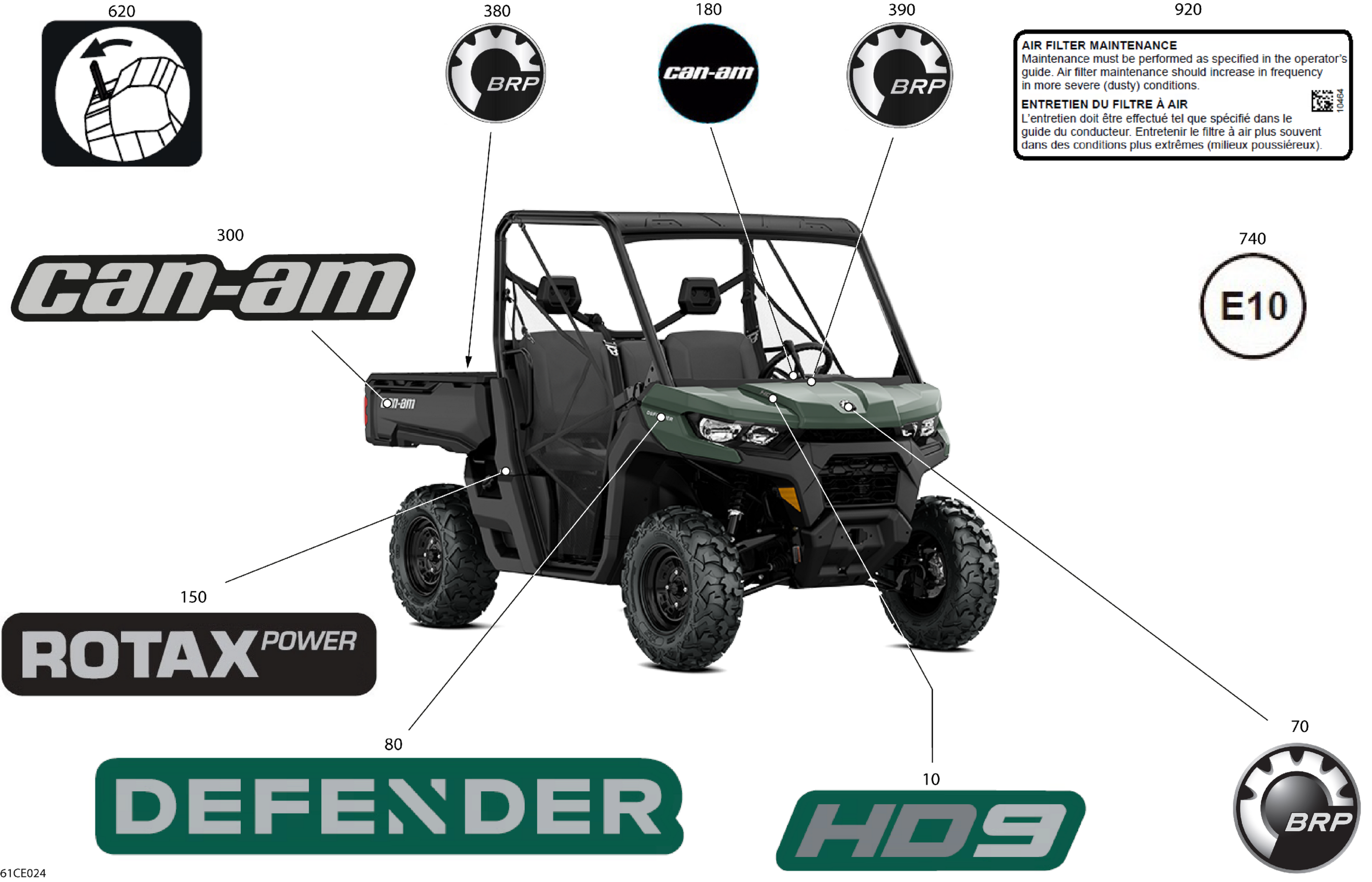 Can-Am Defender Max - HD9 - DPS - 8RSA - Compass Green - 62" Width CALI, 2025 Body - Decals Diagram