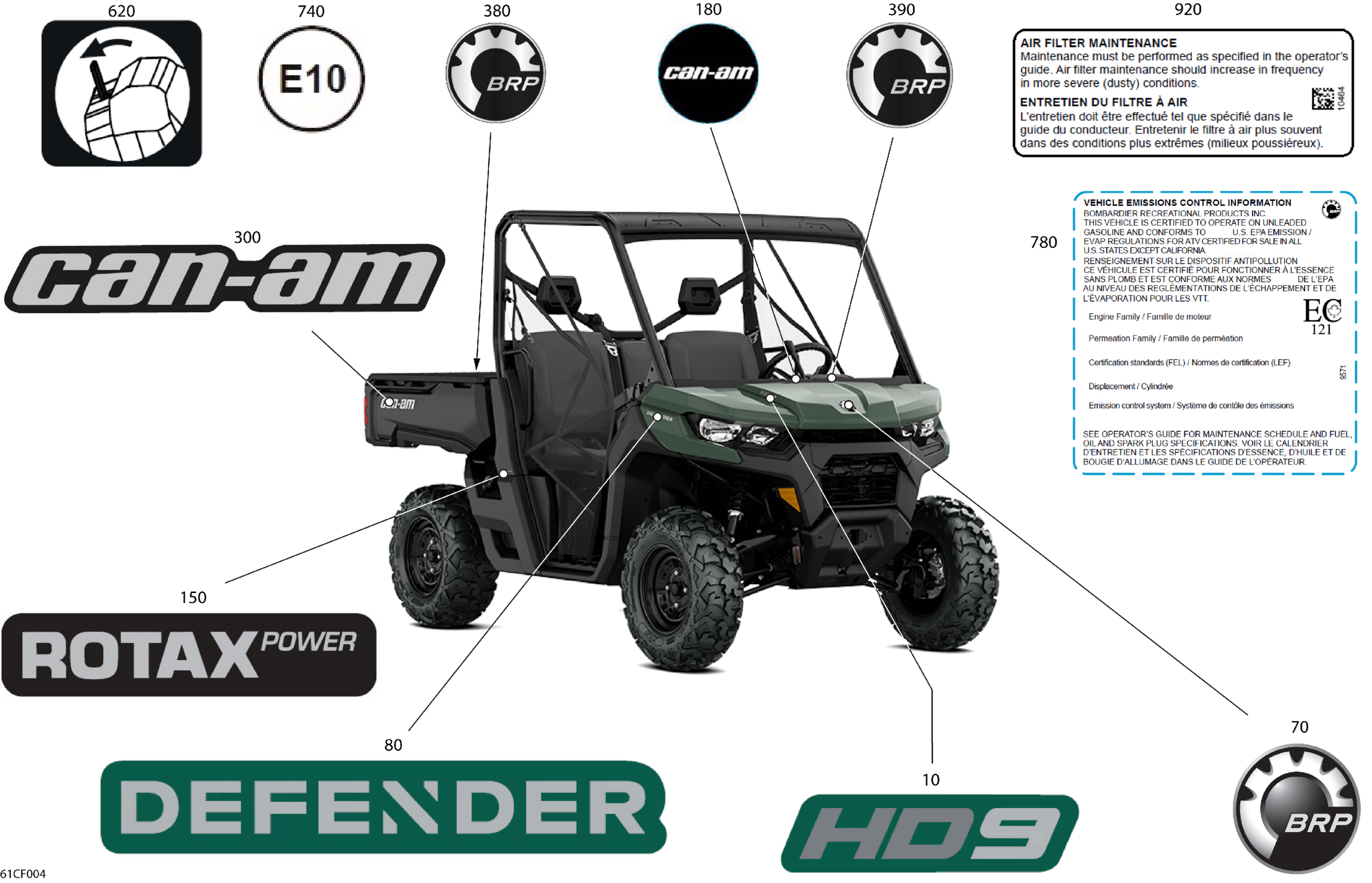 Can-Am Defender MAX - HD9 - DPS - 8RTA - Compass Green - 62" Width, 2026 Body - Decals Diagram