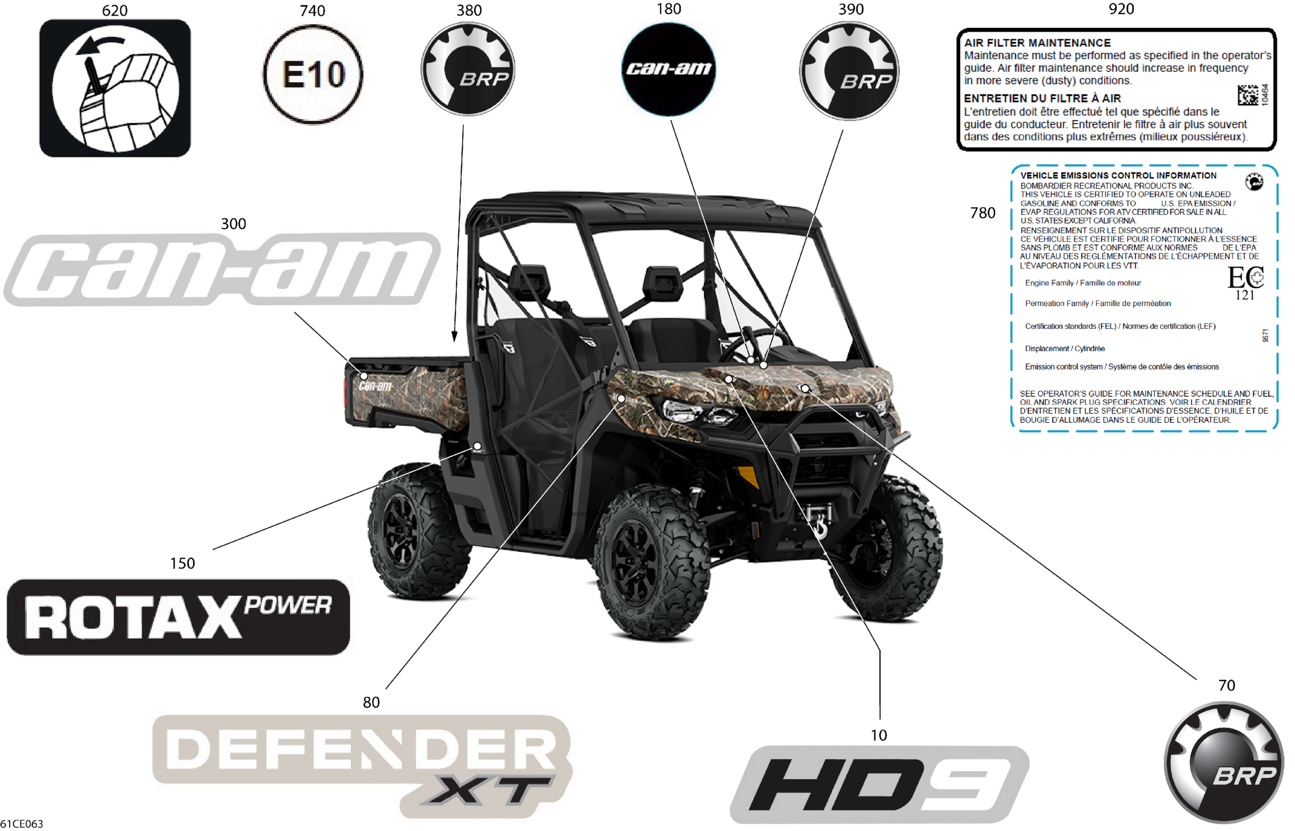 Can-Am Defender Max - HD9 - XT - 8SSG - Wildland Camo - 62" Width - 2025 Body - Decals Diagram