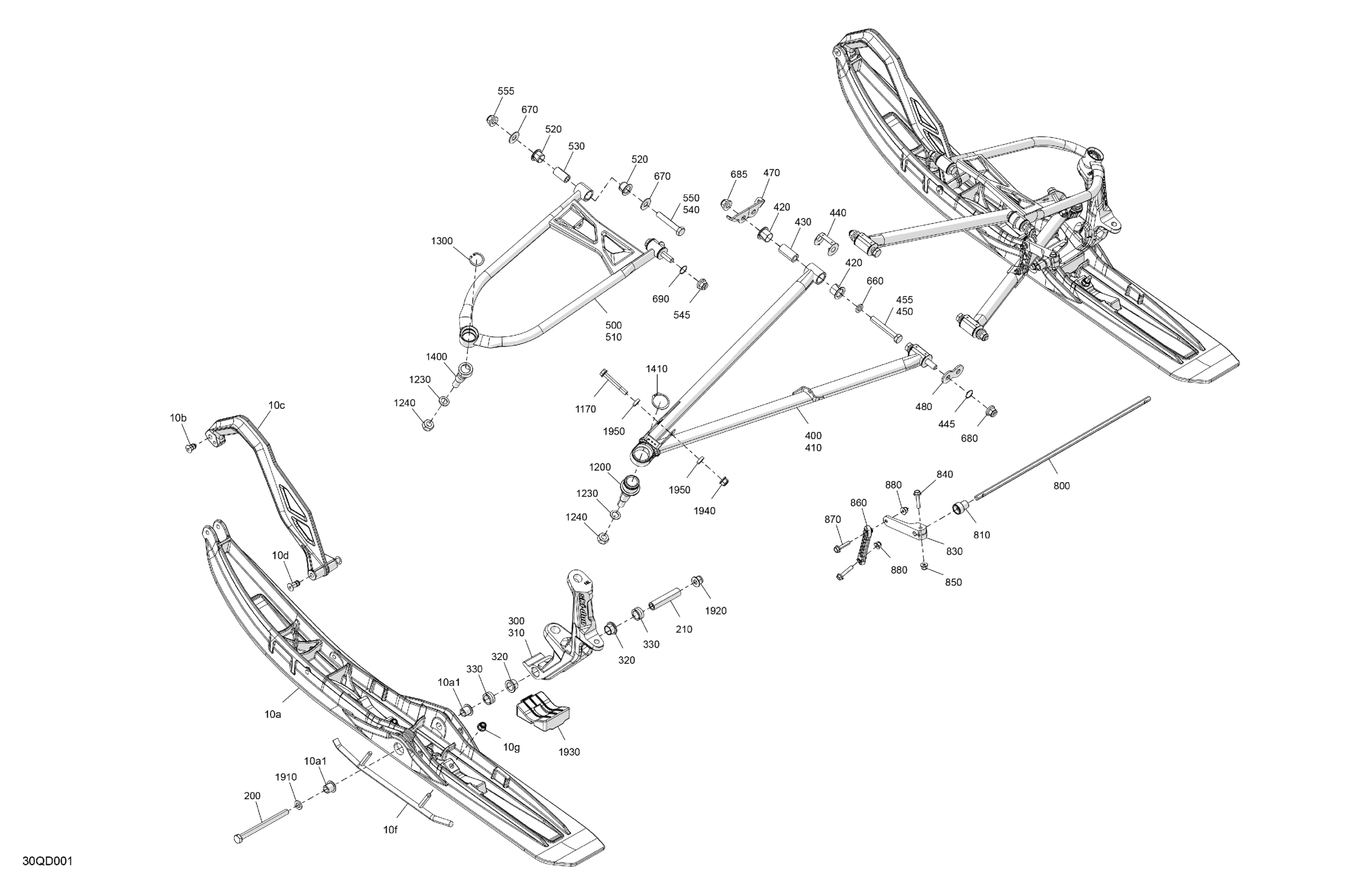 Ski-Doo North America - Electric GRAND TOURING - SPORT - EVRA - Brigth White - 120X14X0.75LFF Track, 2024 05- Suspension - Front Diagram
