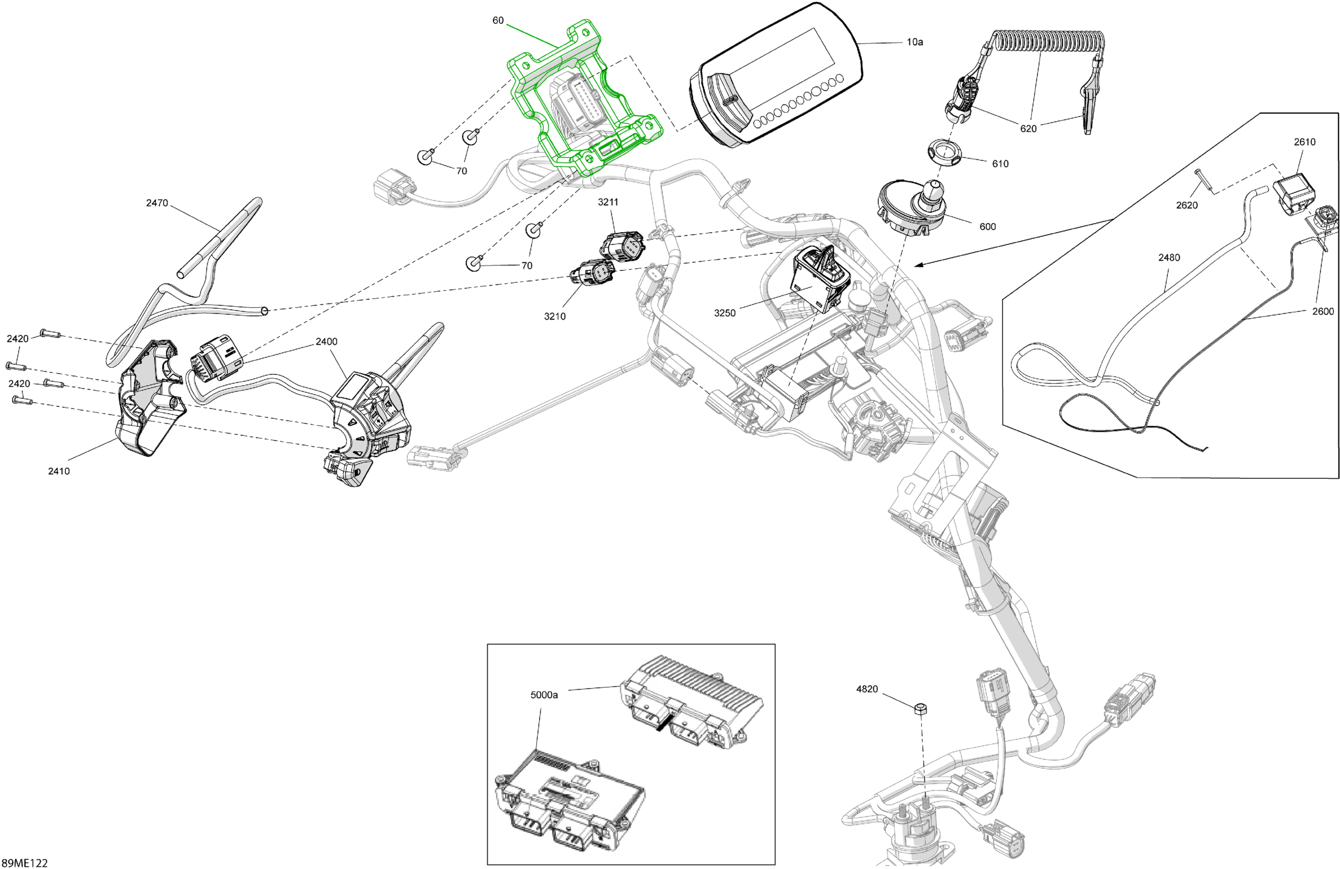 Ski-Doo North America - EXPEDITION - 600 ACE - SPORT - KCSA - Neo Yellow - 154X16X1.5CH Track - 2025 08- Electric - Upper Section Diagram
