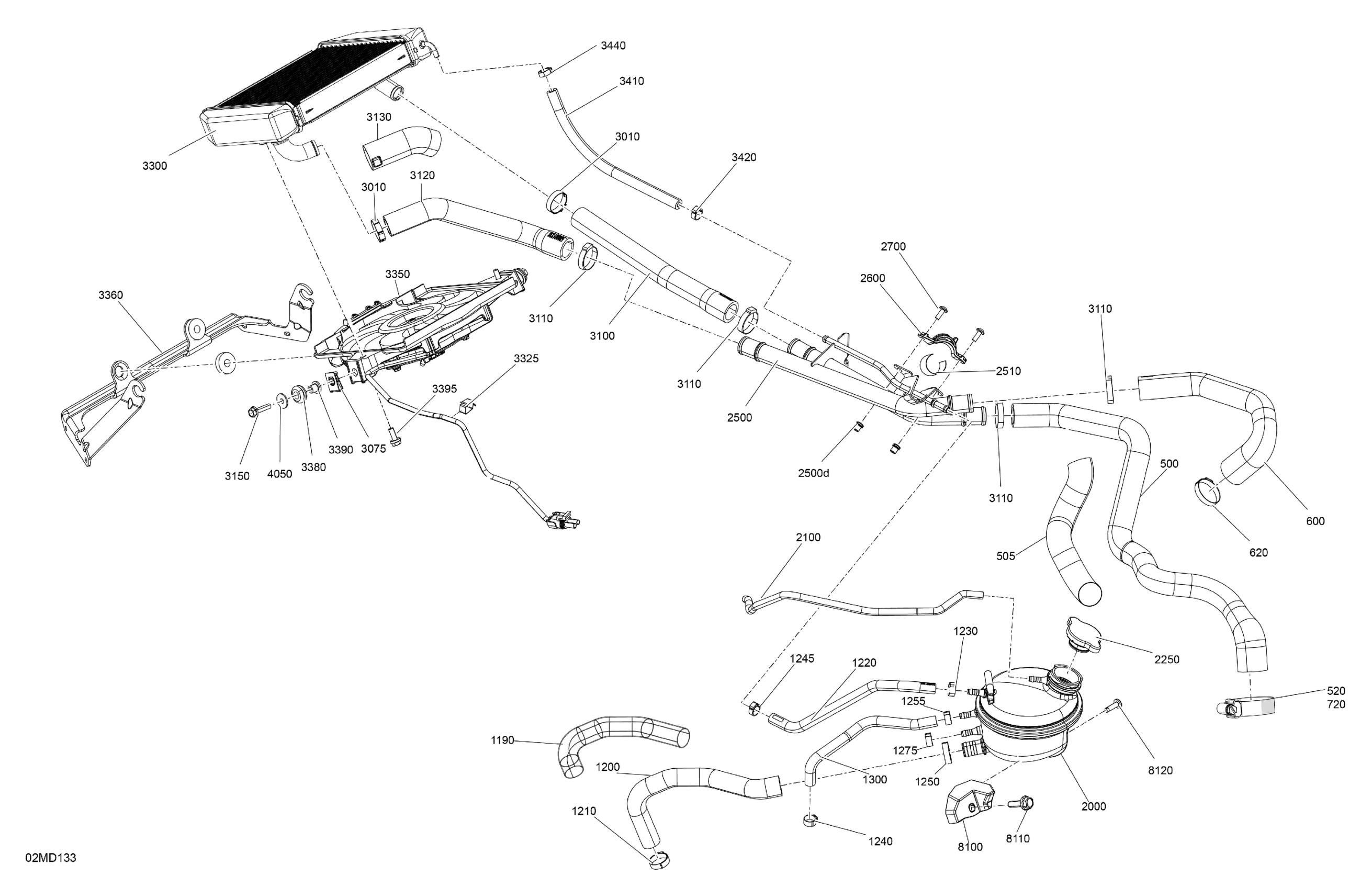 Ski-Doo North America - EXPEDITION 600R E-TEC - LE - AMRA - Deep Black - 154X24X1.5CST Track, 2024 02- Engine - Cooling Diagram