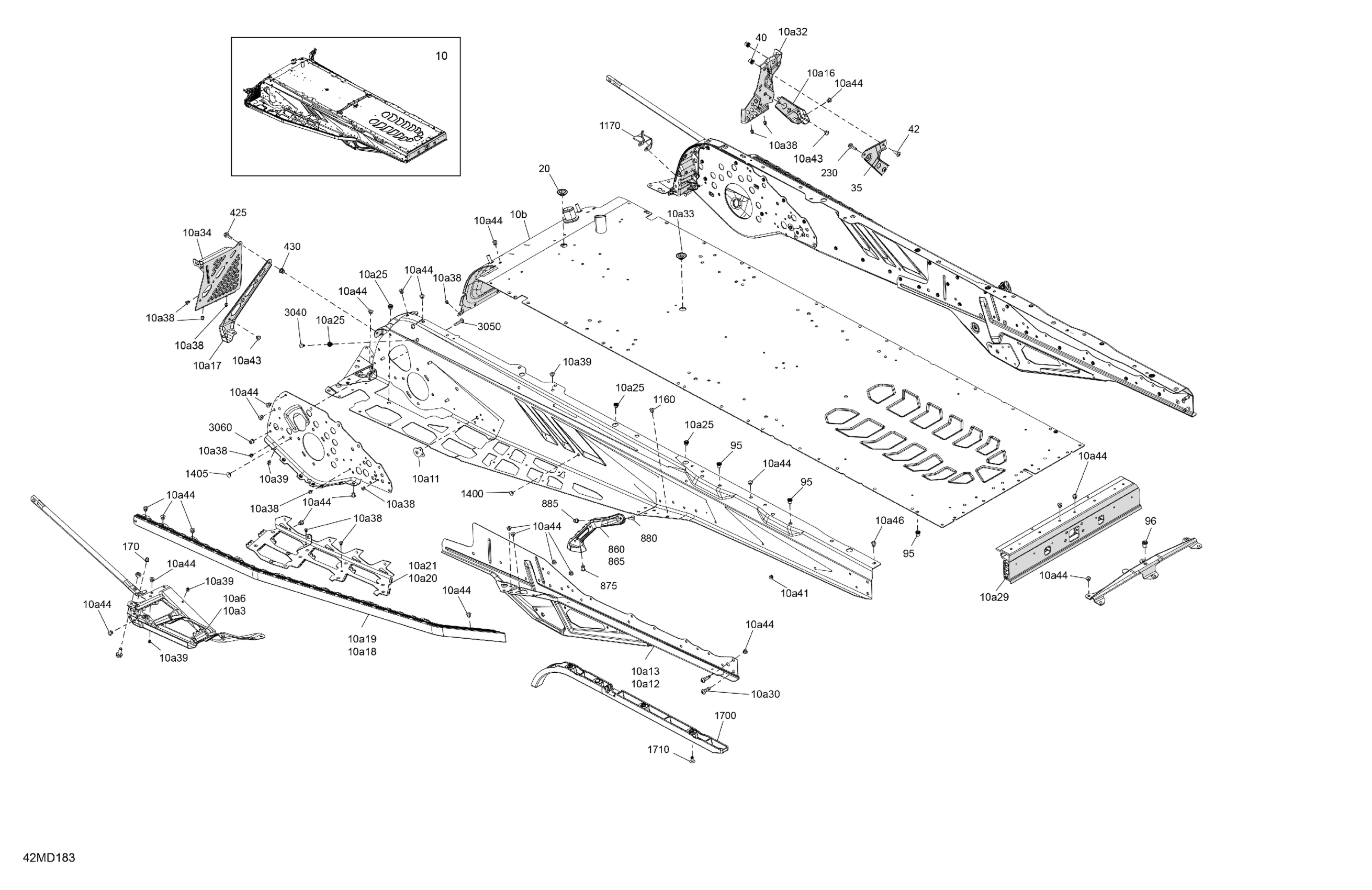 Ski-Doo North America - EXPEDITION 600R E-TEC - LE - AMRA - Deep Black - 154X24X1.5CST Track, 2024 06- Frame - System - Rear Section Diagram