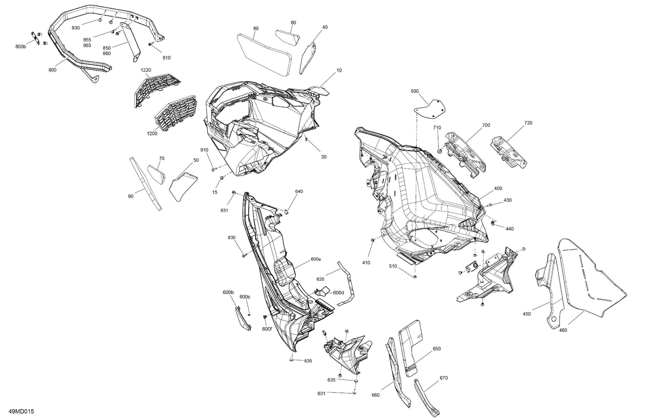 Ski-Doo North America - EXPEDITION 600R E-TEC - LE - AMRA - Deep Black - 154X24X1.5CST Track, 2024 07- Body - Bottom Pan Diagram