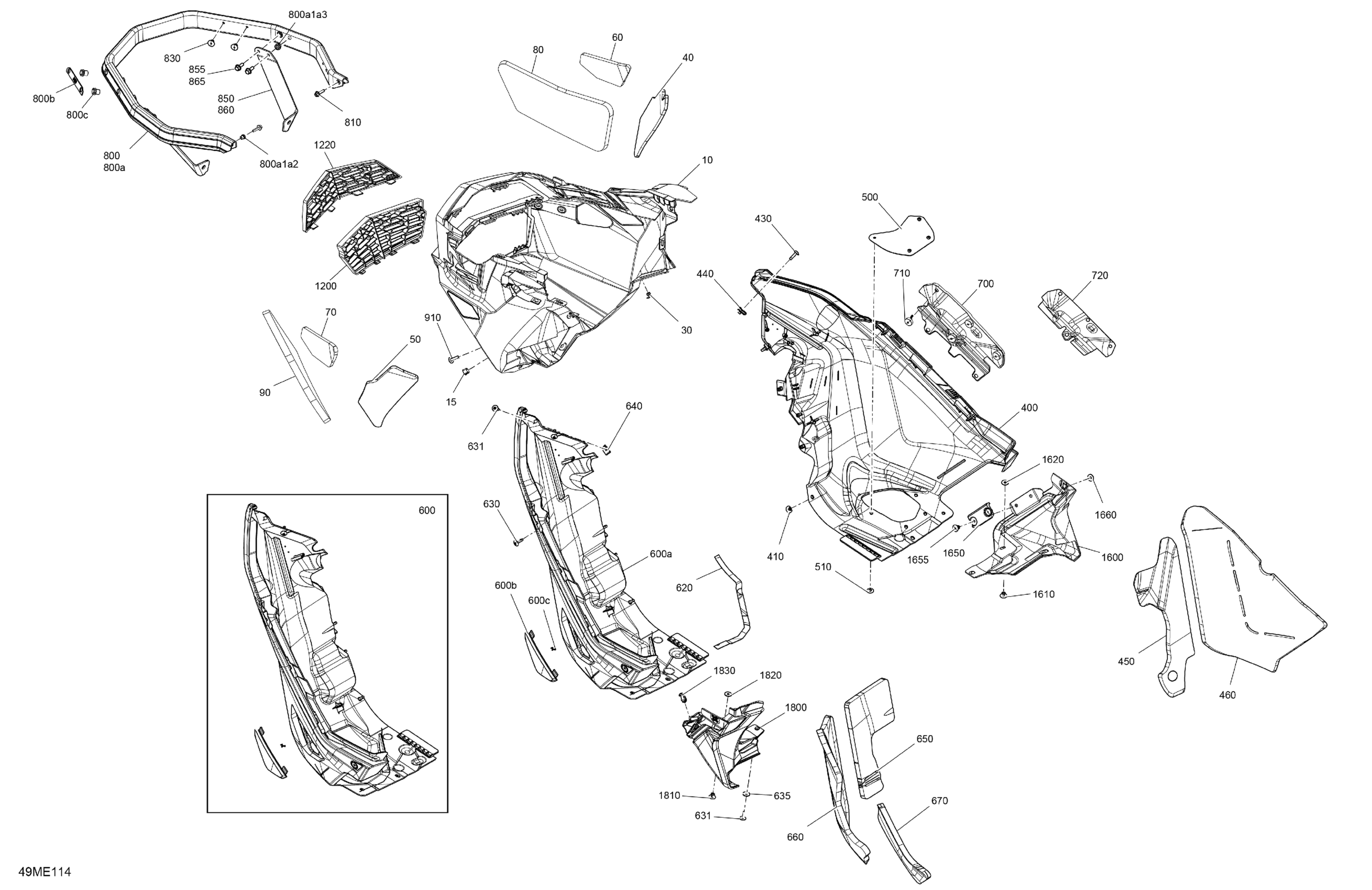 Ski-Doo North America - EXPEDITION - 850 E-TEC - SE - AGSB - Dusty Navy Satin - 154X20X1.5CST Track - 2025 07- Body - Bottom Pan Diagram