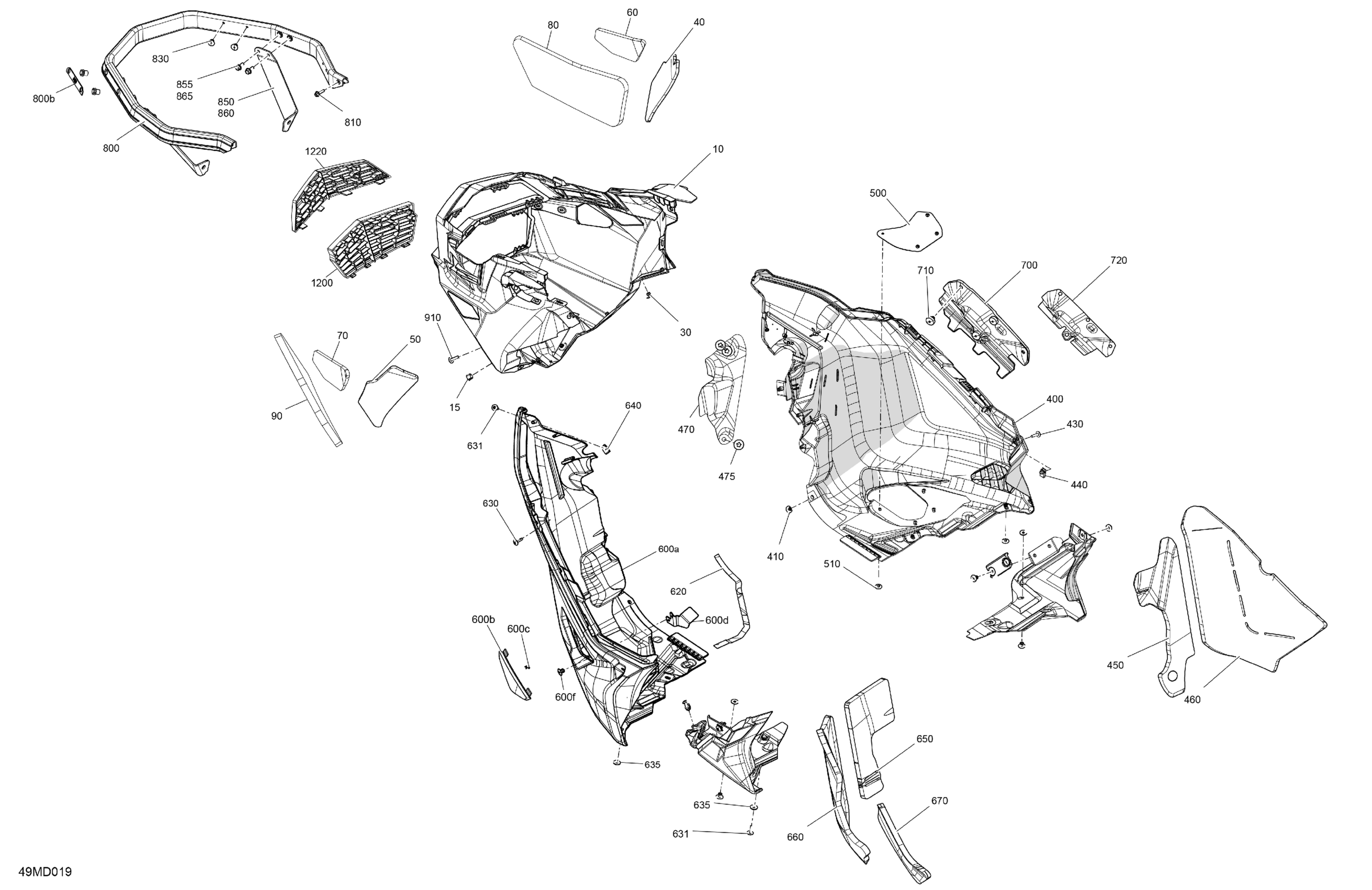 Ski-Doo North America - EXPEDITION 900 ACE - LE - ARRA - Deep Black - 154X24X1.5CST Track, 2024 07- Body - Bottom Pan Diagram